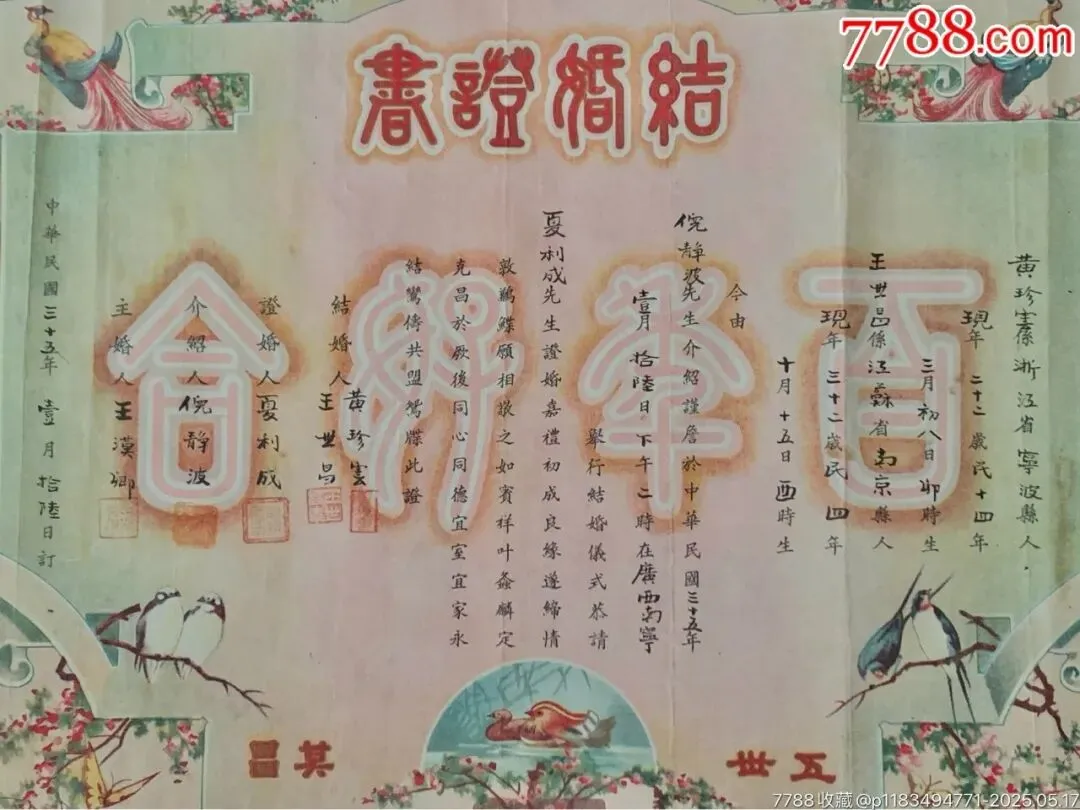 民国三十五年一月(1946年),五世其昌,百年好合!