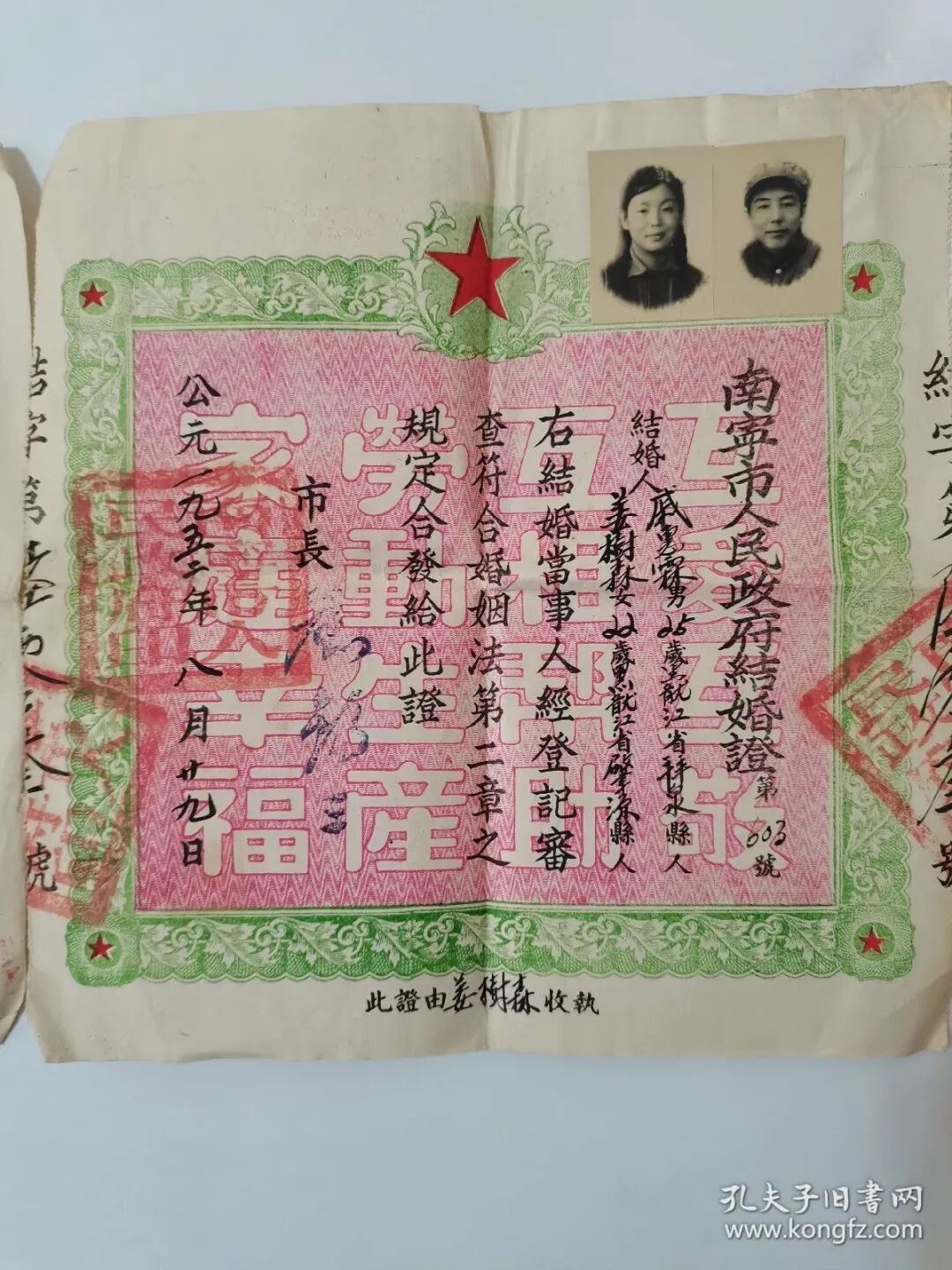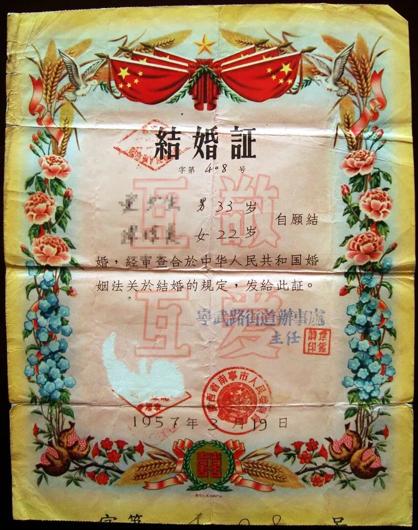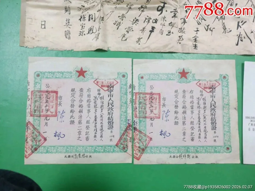 1953年12月南希元市长签批,第二区人民政府,百年好合!