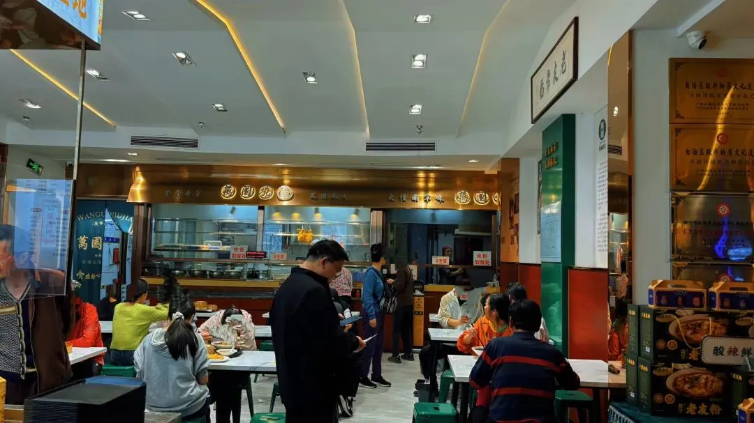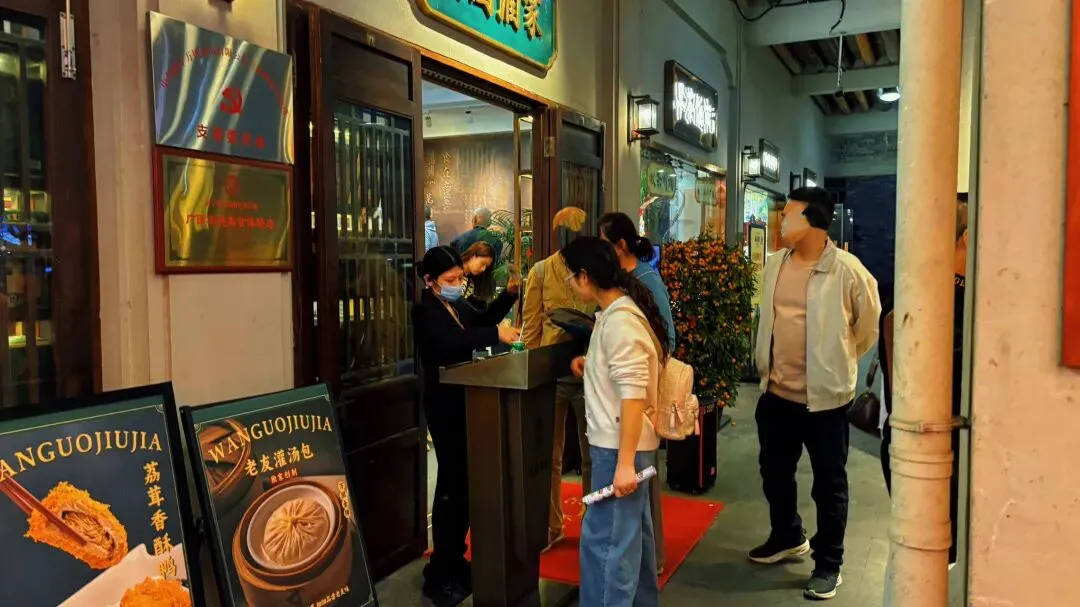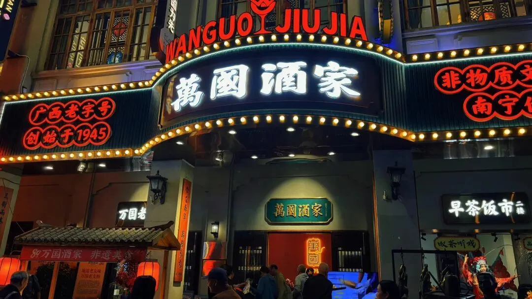 今晚路过三街两巷那里看见,万国酒家一楼好多人在吃东西,也有好多人在等待二楼的位置,因为需要排队的,现在的万国酒家已经成为外地游客们的必吃店之一了,它有老友粉,茶点,广西特色菜,烧卤腊味都有……