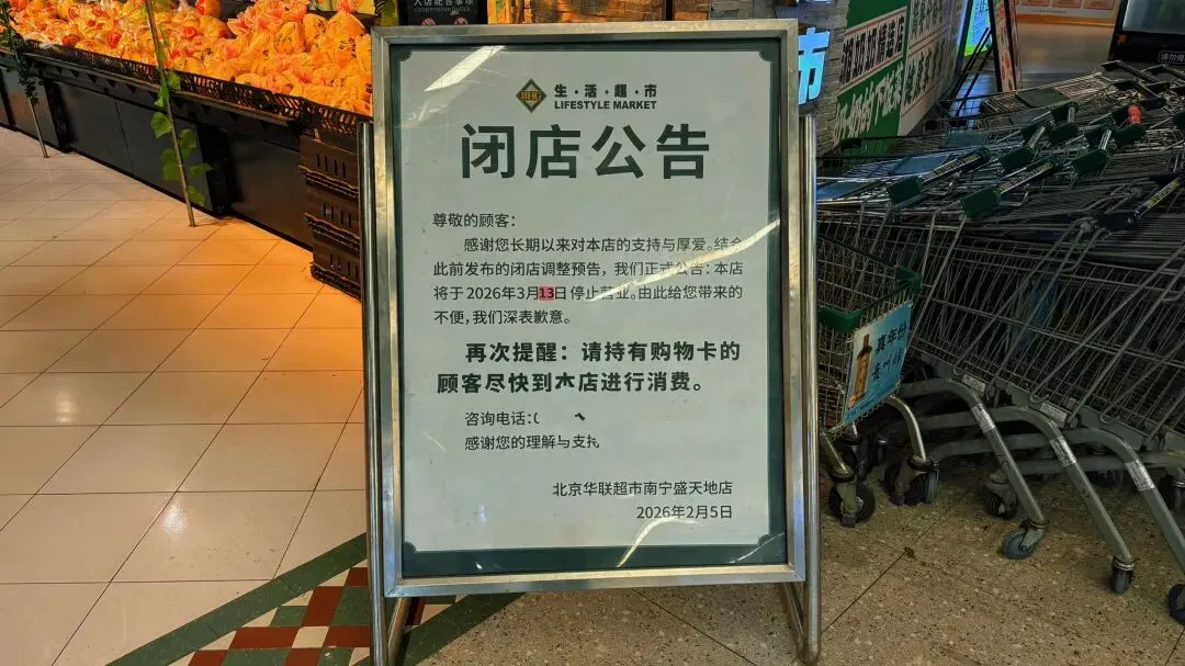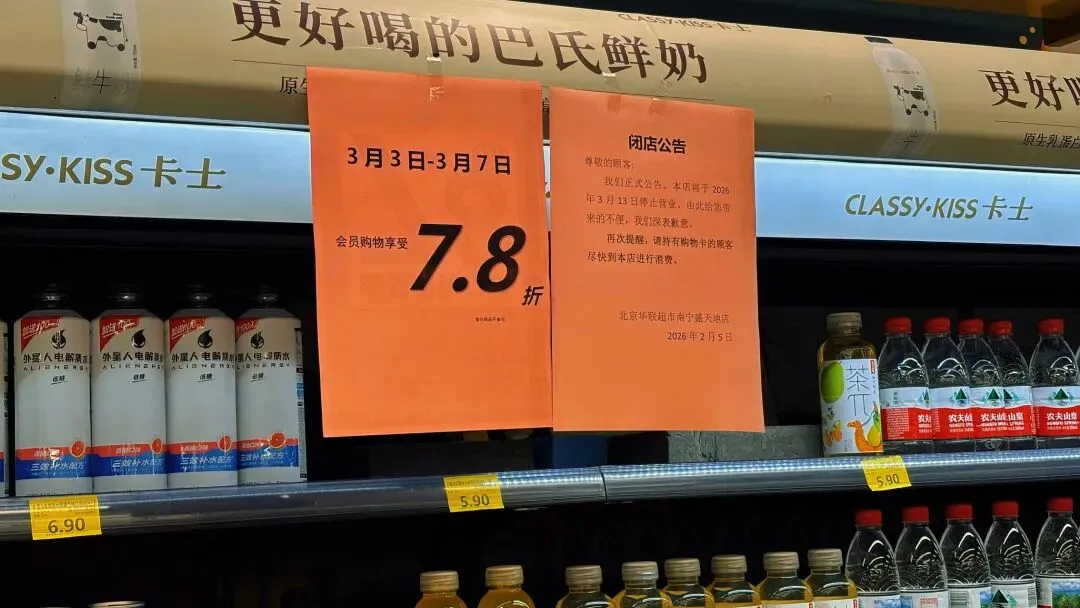 今天去了一趟东盟商区域那边逛,发现盛天地那里的这家老牌超市即将要停止营业了〖北京华联超市〗,看见告示牌上写着2026年3月13号正式停止营业,还通知有购物卡的朋友赶紧去消费,这消息真的好突然啊……