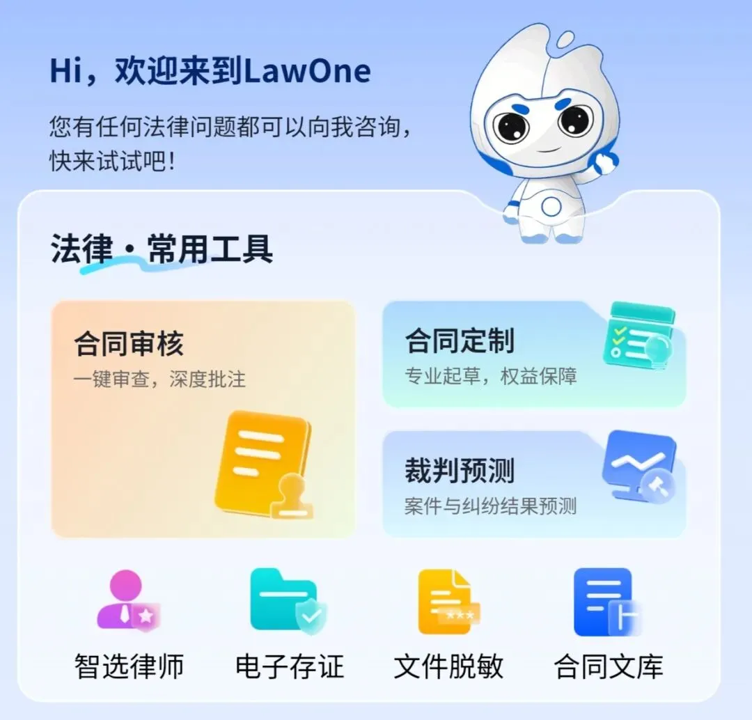 Lawone智慧法律AI小程序:家庭专属智能法务,7×24小时在线守护,覆盖18-75岁全家成员生活法律问题,打开Lawone小程序,就能解锁10项核心法律服务。