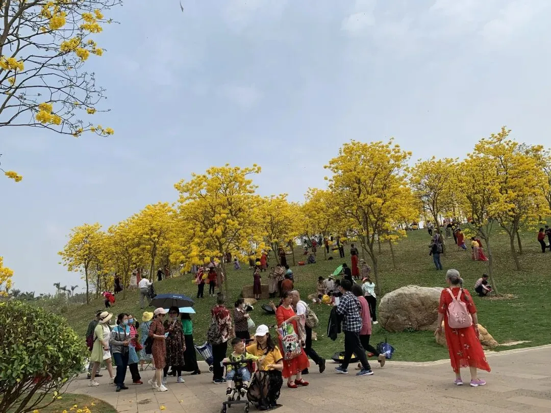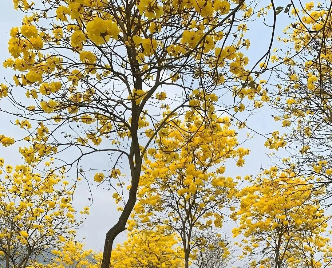 400亩黄花风铃木,金黄不见一片杂色,那片仿佛黄点亮了整个世界。