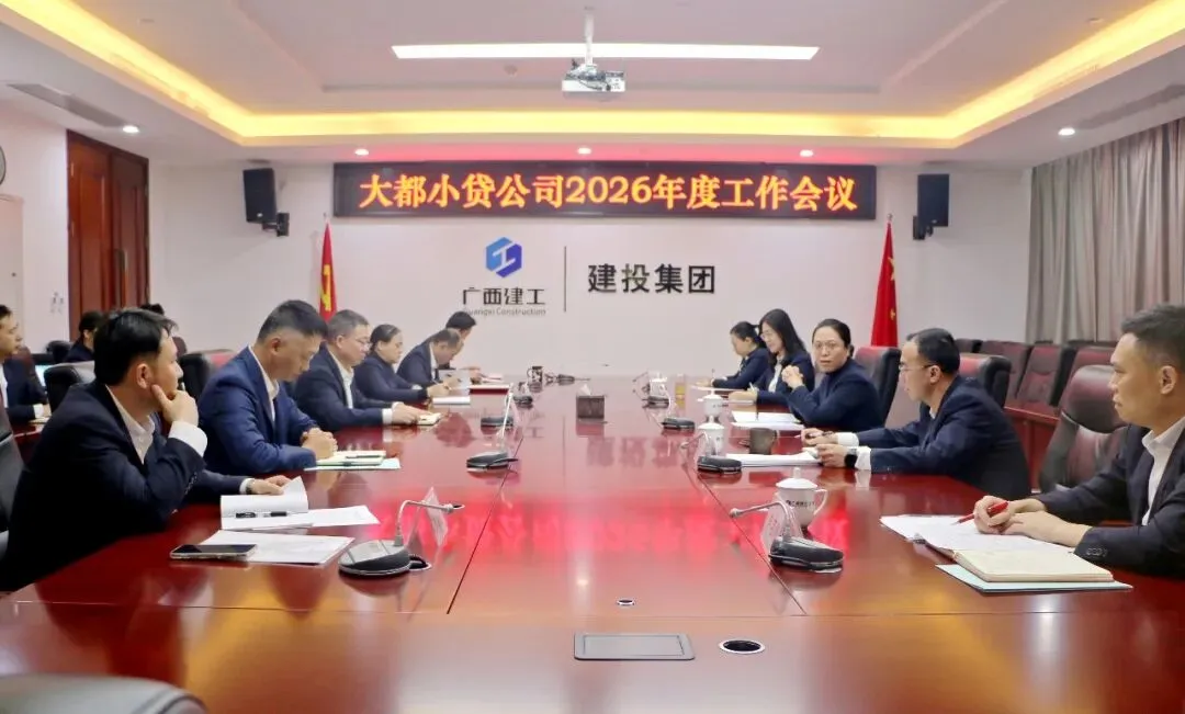 3月4日,南宁市大都小额贷款有限公司在建工大厦920会议室召开2026年度工作会议。广西建工建设投资集团有限公司副总经理李潇湘出席并讲话。公司董事长彭靖雨作工作报告。公司总经理、党支部书记邓园园传达上级会议精神,副总经理卢名川主持会议,财务总监张雯棣参加。