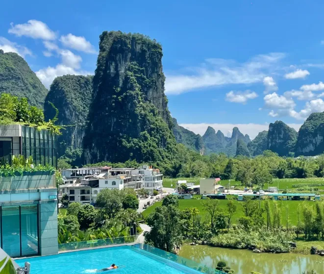 住的地方,建议选在明仕田园附近。别去住那种千篇一律的商务酒店,没意思。找个靠水的民宿,窗户一推就是喀斯特峰林。带娃的选有院子的,方便撒欢;想省钱的,镇上也有干净的小旅馆。晚上听着稻田里的蛙声,比什么助眠音乐都管用。