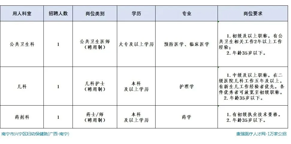 在医疗事业不断发展的征程中,南宁市兴宁区妇幼保健院(金禾湾社区卫生服务中心)一直致力于为居民提供全面、优质、贴心的医疗保健服务,始终秉持着守护健康的使命,为提升医疗服务质量,现面向社会广纳贤才,诚邀优秀的医疗人才加入我们的团队。