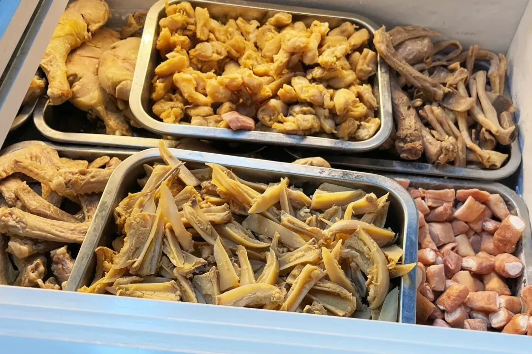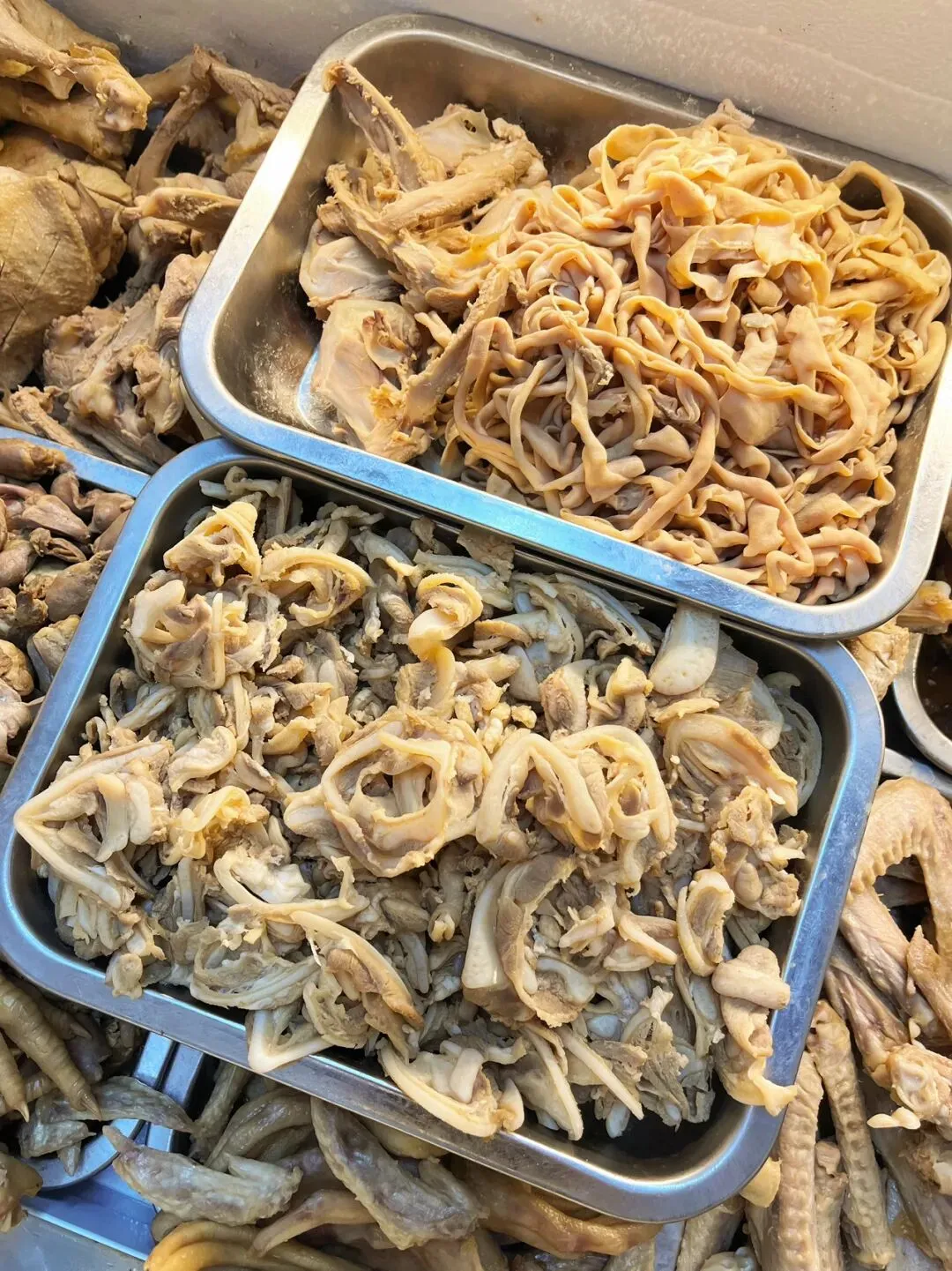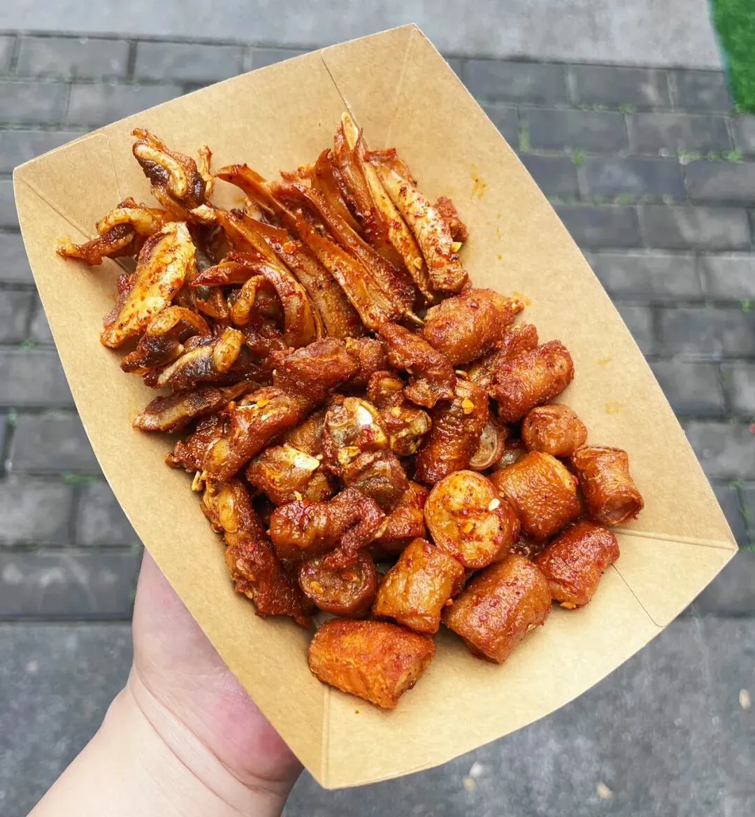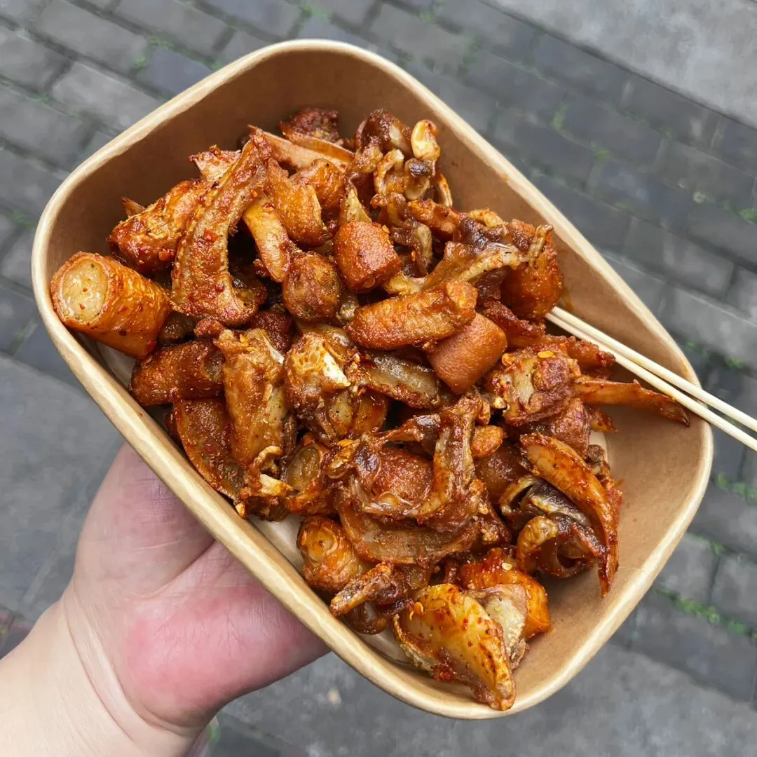 之前看到别人发的炸小肠,看着很好吃的样子,当看到“全村人都知道我在南宁做鸭”这个店名,觉得这个老板应该是一个挺有趣的人,处于好奇,跑去这家店里,看看他们做的东西好不好吃。去到店里,主要是奔着炸小肠去的,看到其他想吃的,就顺便都拿了一些。刚炸出来,吃了一口,太好吃了,好久没有吃到那么好吃的炸物了。特别是那个小肠,太好吃了,有点后悔小肠拿少了。问店员是什么小肠,她说她也不知道🤷。这家店是做鸭子的,可能是鸭肠吧?但是鸭肠好像没有那么大,是什么这些都不是很重要,作为“吃货”,好吃才是主要的。因为点了其他软骨还有鸡脚筋,它们是和小肠放在一起炸的,端出来的时候,混杂在一起,小肠都没见到几块。软骨点得太多,失策了。虽然软骨和鸡脚筋也很好吃,但是骨头占比太大,嚼得腮帮子好累。终于知道为什么那么多人点小肠了,小肠嚼起来香香润润的,嚼得不累又不塞牙。还点了一份蔬菜拼盘,蔬菜拼盘里有包菜、土豆、香菇、豆角等,本来还以为素菜估计就一般,没抱着什么期待,结果是出乎意料的好吃,吃到差点咬到舌头,已经想不出形容词了。炸物刚出锅的时候是最好吃的,外卖运送的过程中热气遇冷成水滴,容易反水,影响口感,特别是肉类的,有条件的话能在店里吃,味道更好。蔬菜拼盘原本以为炸过,吃起来会“干巴巴”的,结果没有,即便凉了也还好吃,毕竟蔬菜的水份被锁在里面,外头反水,对它们的影响不算很大。这炸土豆吃起来香香糯糯的,点的这些东西里,我个人觉得最好吃的是小肠,然后就到它了。他们家的炸物是自选称重的,5.8块钱一两,鸭腿是按个算的,10块钱一个,据说他们家的炸鸡尖也很好吃,可惜当时鸡尖被压到下边,没仔细看,没发现。他们家还真的是在做鸭,我还以为都是各种炸物,店名就是个噱头,招牌就是香酥鸭,半只是25块钱,一只是48块钱,炸鸭腿看着也好诱人,可惜那天是吃了午饭才去的,这些都没得试,不知道好不好吃,下次有机会再去试一试。他们店放的这些小鸭子童趣十足,可惜不适合给太小的小孩子吃这些。