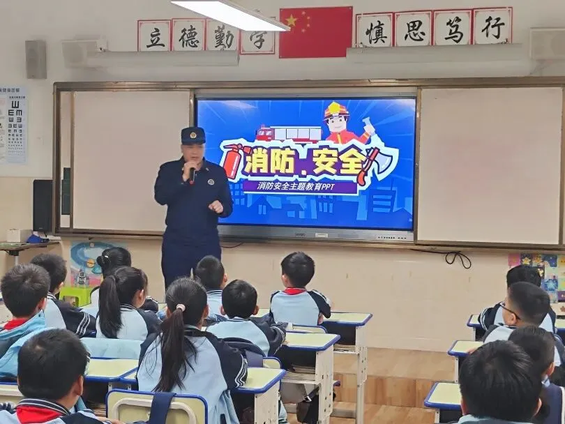 “发现火情要怎么报警?”“教室里突发火灾要如何逃生?”课堂上,蓝朋友结合校园场景,用通俗易懂的语言讲解火灾预防、正确报警、火灾逃生等核心知识。通过真实案例分享、趣味互动问答,让同学们主动参与其中。一个个实用知识点,在轻松的氛围中被同学们牢记于心。