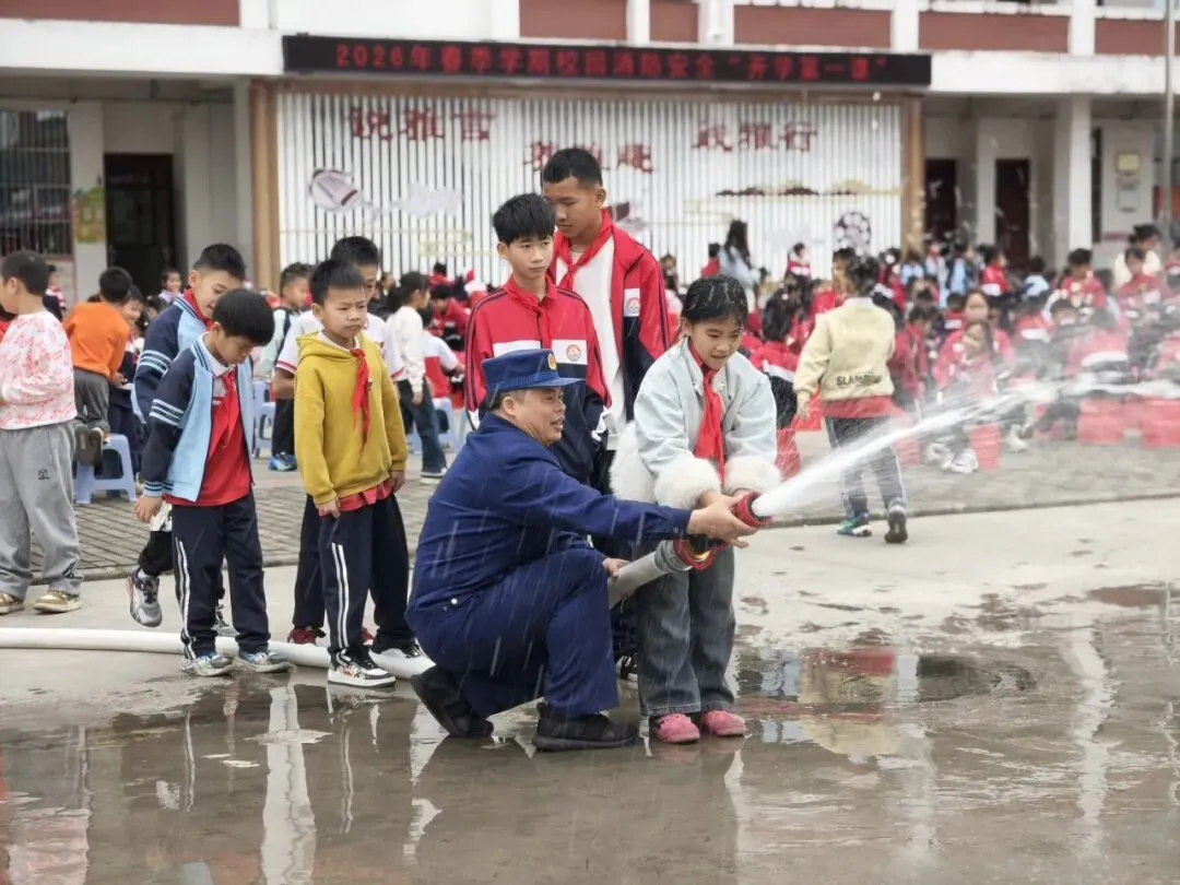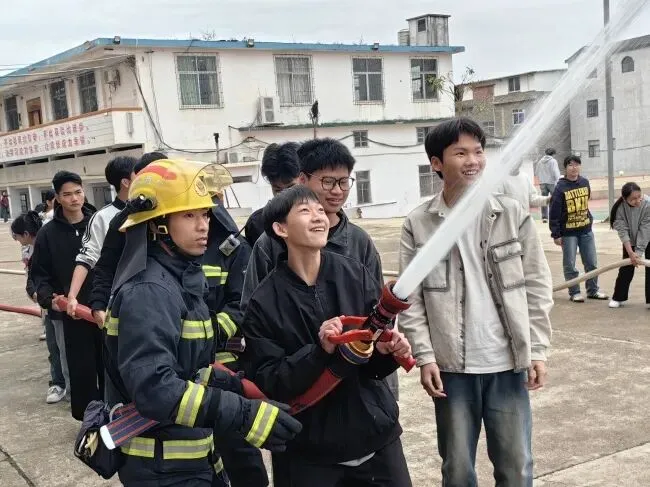 光懂理论不够,亲手实操才扎实!蓝朋友现场示范灭火器“提、拔、握、压”四字口诀,手把手教大家掌握要领。随后,老师和同学们排着队轮流上阵,亲手拿起灭火器,体验真实灭火的过程。最受期待的环节当属水枪实操体验。在蓝朋友手把手指导下,同学们抱起水带、握紧水枪,亲身感受水枪的重量和水压的冲击。