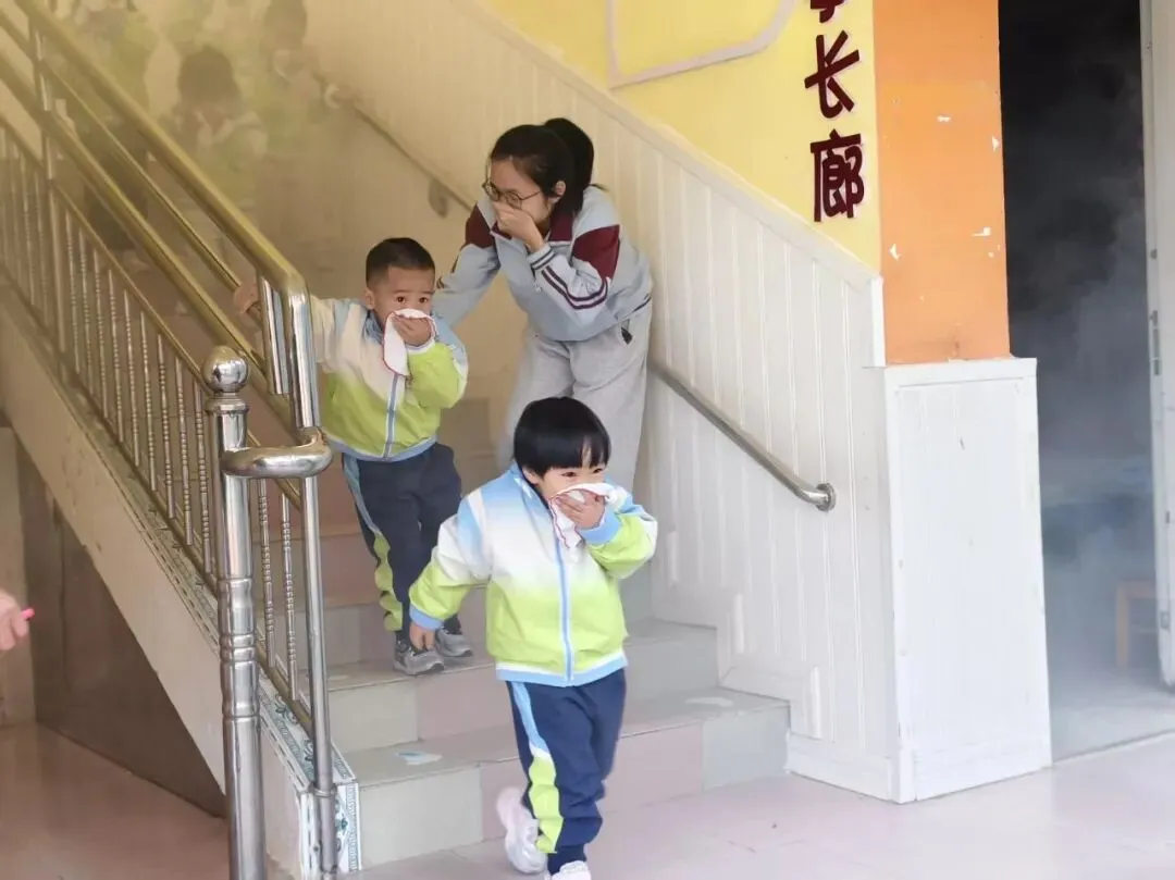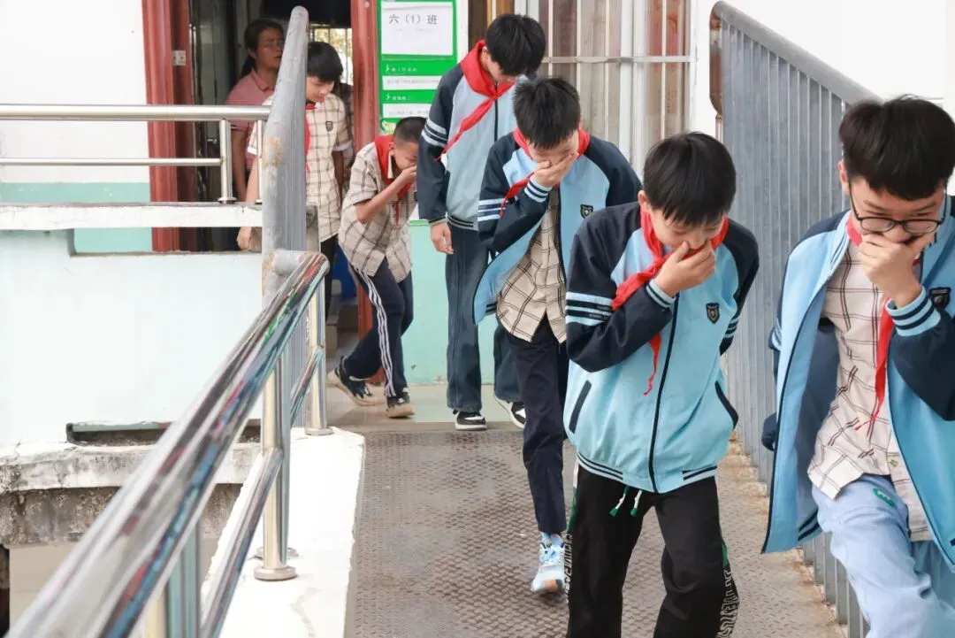 “呜 —— 呜 ——” 尖锐的模拟火灾警报声突然响起,一场沉浸式应急疏散演练正式启动!同学们立刻捂住口鼻、弯腰低姿,在蓝朋友和老师的引导下快速逃生,短短几分钟就全部安全撤离到集合点。