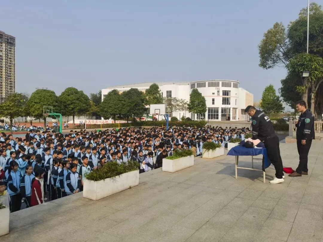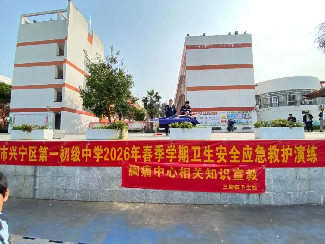 为普及应急救护知识,提升中学生自救互救能力,筑牢校园安全防线,3月6日上午,三塘镇卫生院医护急诊科医生莅临兴宁一中篮球场,为七、八年级学生开展了一场内容丰富、实用性强的应急救护演练培训。