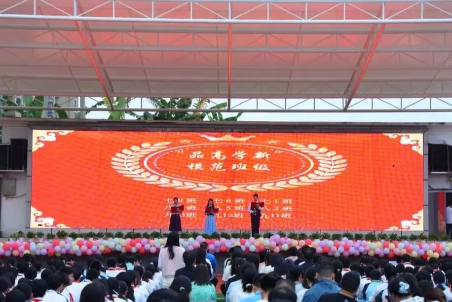 典礼在庄严肃穆的国歌声中启幕。黄秋妮校长首先发表了热情洋溢的新学期致辞,言辞恳切,寄望殷殷,为全体师生描绘了新学期的蓝图,注入了前行的动力。随后,大会进行“品高学新”颁奖系列,以视频展播与现场表彰相结合,致敬过去一学期里奋勇争先、全面发展的先进集体。掌声礼赞着奋斗,榜样的力量在此刻凝聚,激励着更多学子砥砺前行。