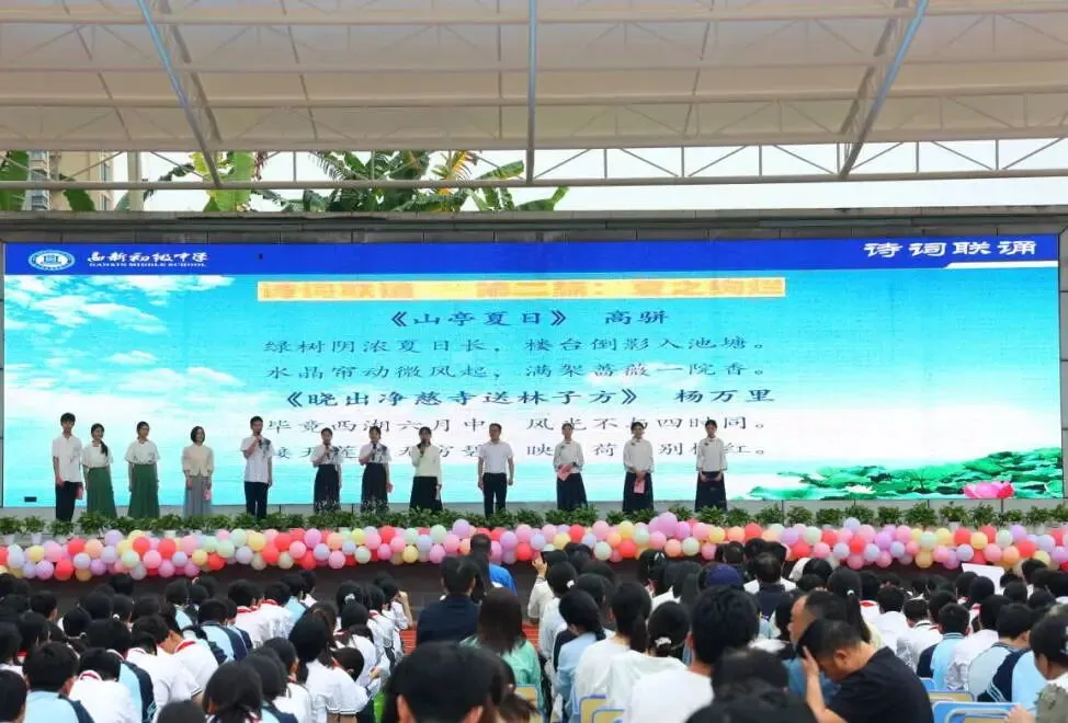 典礼的高潮在于“书香”的正式启航。学校隆重启动了“书香起航·悦读成长”读书节,校领导发出《经典为伴·书香致远》的深情倡议。语文组师生联袂献上的大型诗词联诵《四季诗韵》,以及全场师生及家长代表齐涌《青春中国》(节选部分),以声传情,以韵载道,带领全场穿越千年文脉,尽展中华诗词的永恒魅力。
