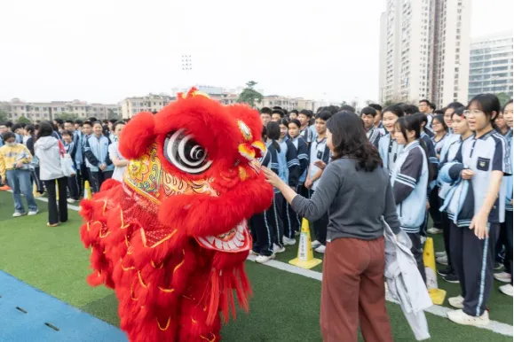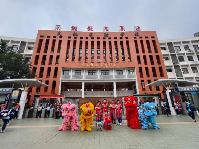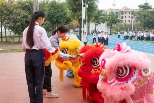 清晨,学校非遗舞狮队以最热闹的仪式迎接学子们归来。矫健醒狮腾跃翻转、灵动穿梭,喜庆又震撼,校园里满是朝气与喜气,新学期的氛围感十足。