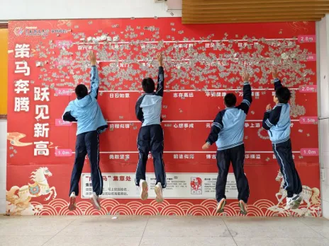 典礼仪式结束后,备受期待的向上启智集章活动在校园中庭火热开启。同学们手持集章卡,穿梭于各个任务点,在向上启智闯关活动里集齐“智慧马”“勤学马”“活力马”“文明马”“感恩马”“向上马”六枚印章。大家或破解灯谜点亮智慧、默写诗词践行勤学,或完成摸高彰显活力、践行文明传递新风,亦或是向师长表达感恩、书写目标立下誓言,在多样的实践中践行成长目标,解锁新学期的奋进密码。