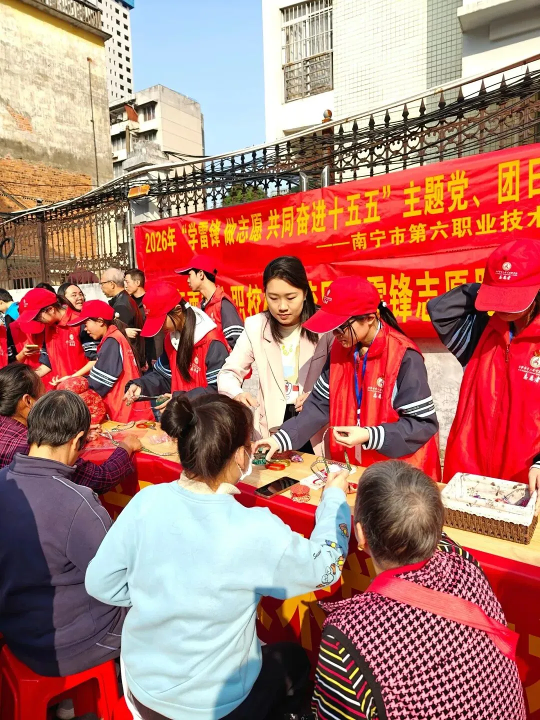 3月5日,南宁市第六职业技术学校组织师生志愿者走进桃源南社区,开展“学雷锋 践行动 共同建功‘十五五’”主题志愿服务活动。
