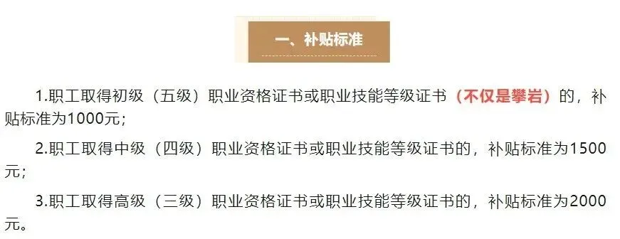 划重点!取得等级证书符合条件可申请1000元/初级、1500元/中级、2000元/高级的补贴(具体咨询各地补贴政策),详情请点击↓↓↓下面图片了解!