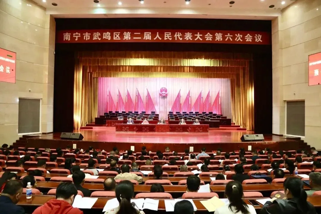 会议表决通过南宁市武鸣区第二届人民代表大会第六次会议议程;选举大会主席团成员和秘书长;通过大会议案办法;通过大会议案审查委员会主任委员、副主任委员、委员名单。