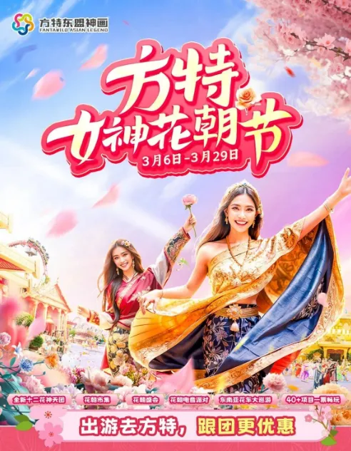 3月6日至29日,景区将举办“女神花朝节”,畅玩全园40多个项目。活动期间,女性游客可享门票半价优惠,即全天票价149元/人(原价299元/人)。
