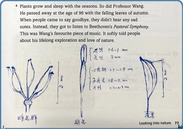 甚至课本里直接印了这些植物的手绘图和它的拉丁文的学名。