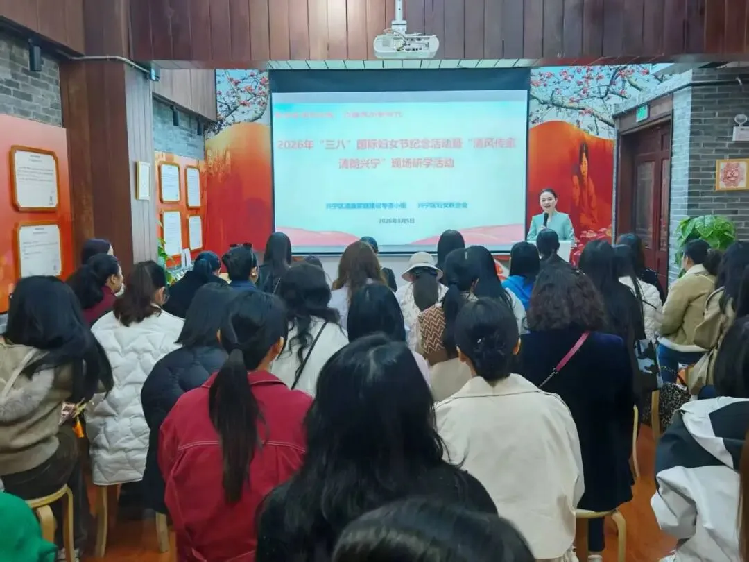 3月5日,兴宁区清廉家庭建设专责小组在全国妇女爱国主义教育基地、广西廉政教育基地——邓颖超纪念馆组织开展2026年“三八”国际妇女节纪念活动暨“清风传家 清朗兴宁”现场研学活动。来自兴宁区机关单位的50余名女干部、女职工在研学过程中,得到了一次精神上的洗礼,对廉洁文化和优良家风有了更深刻的理解和感悟。