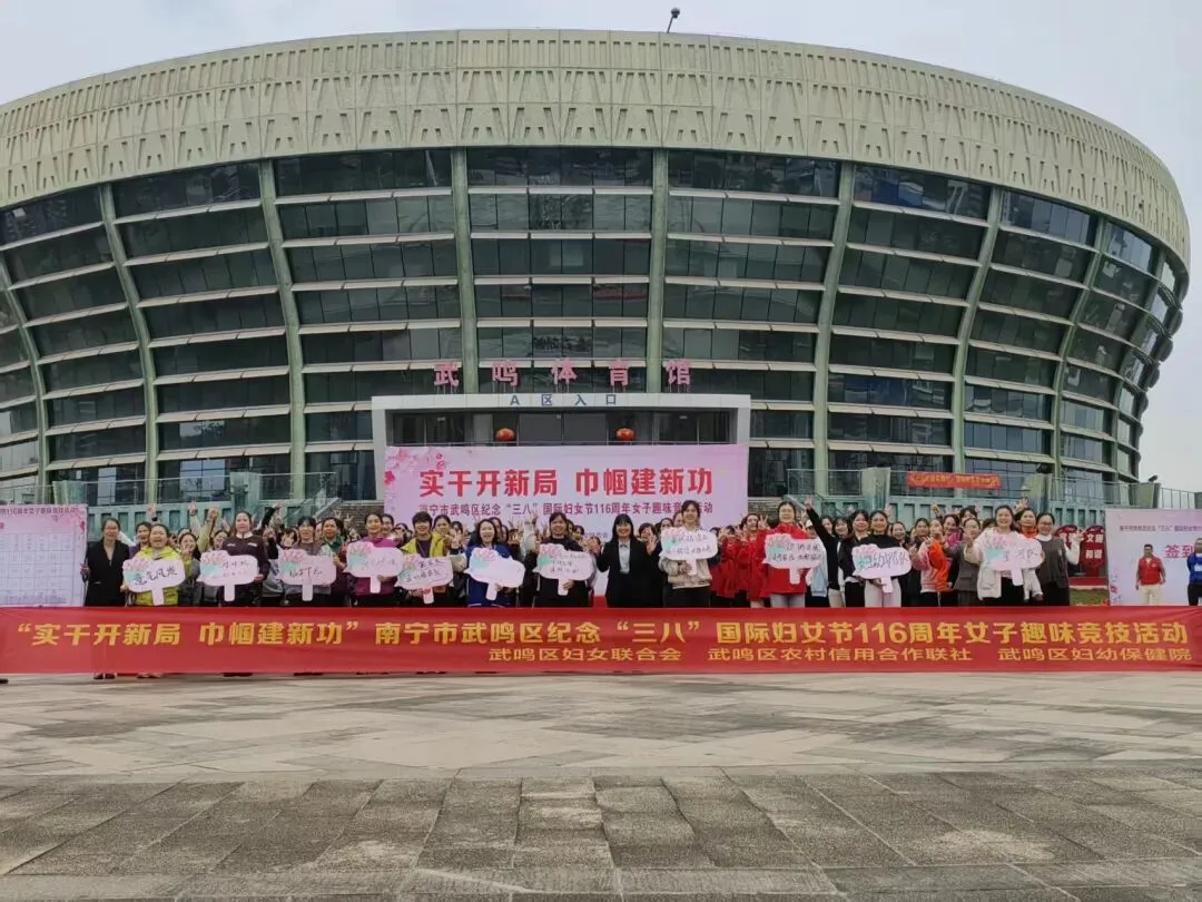 3月3日,由武鸣区妇联联合农村信用合作联社、妇幼保健院主办的2026年“三八”国际妇女节主题活动在此举行。本次活动通过女子趣味竞技的形式,展现新时代女性的活力与担当。现场还同步举行2025年 “母亲邮包一起捐” 项目物资发放仪式,为22名妇女代表送上家庭健康包。