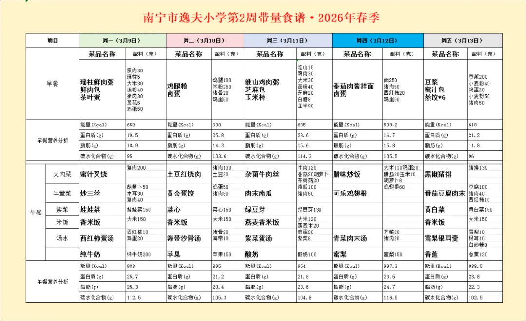 学生配餐菜单