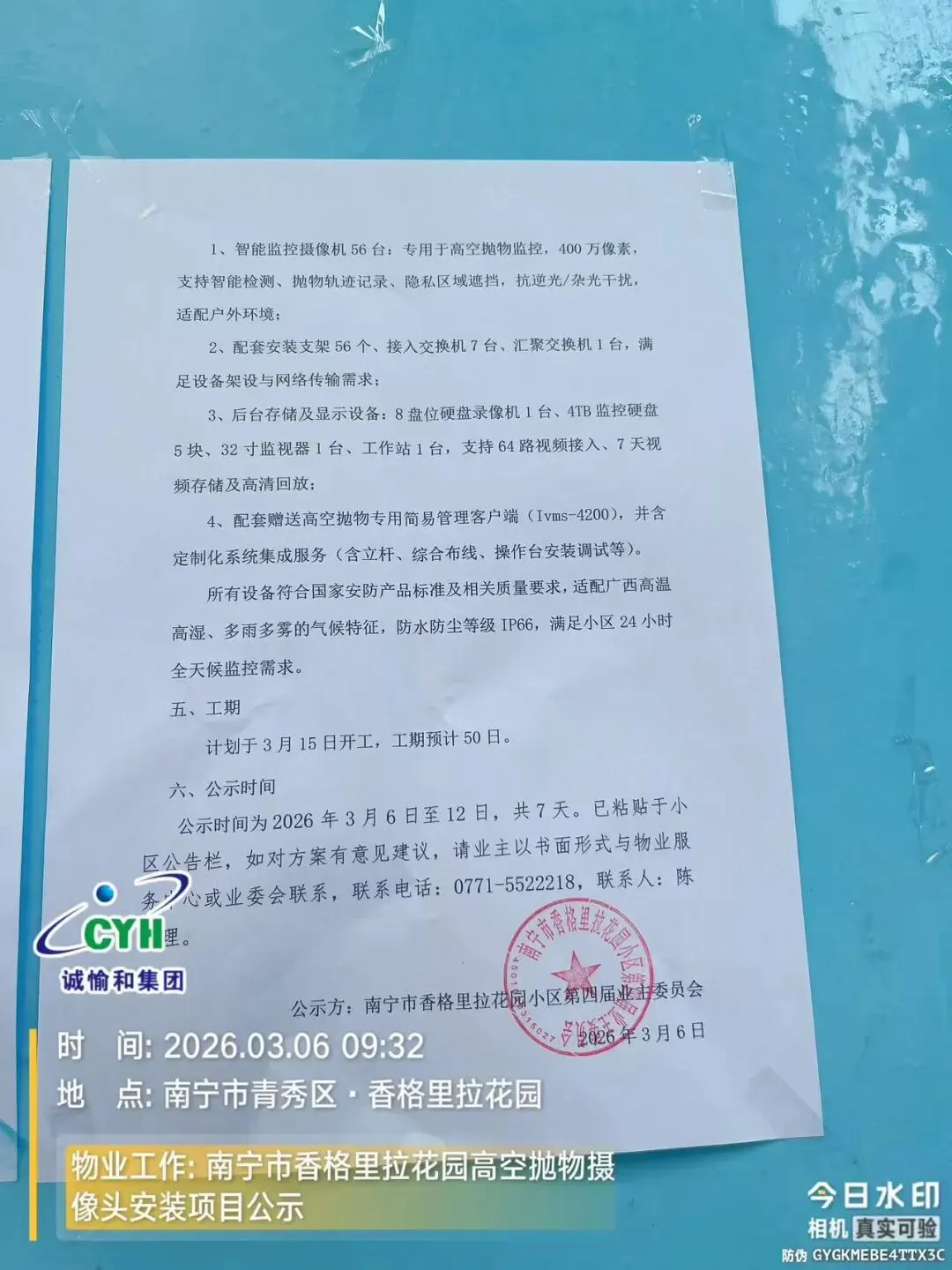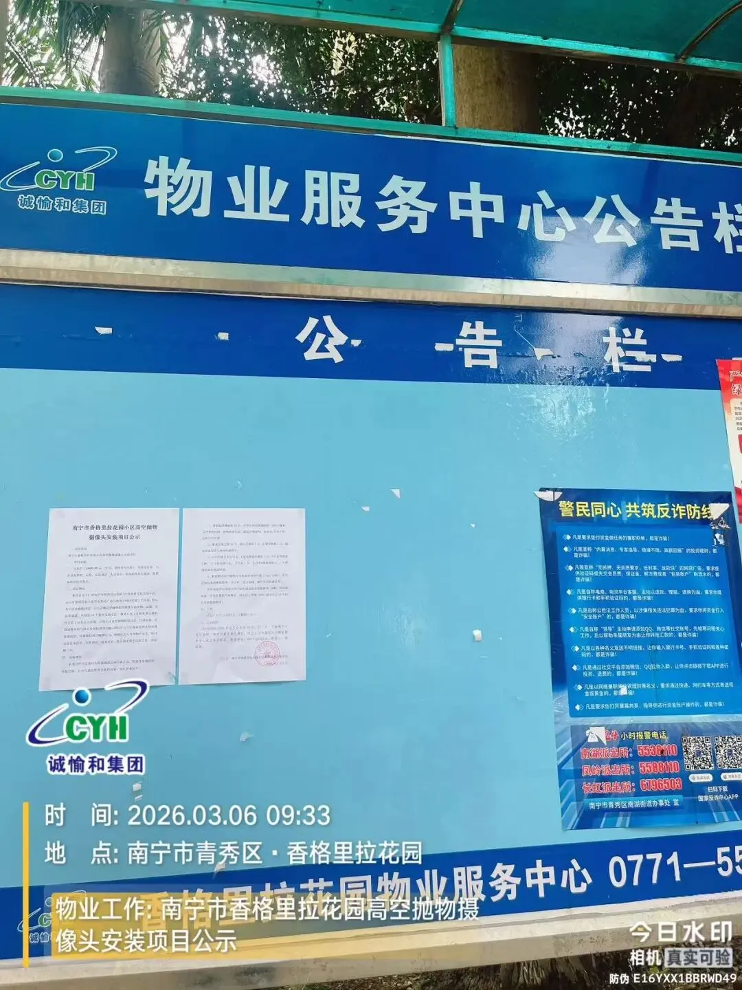南宁市香格里拉花园小区高空抛物摄像头安装项目公示