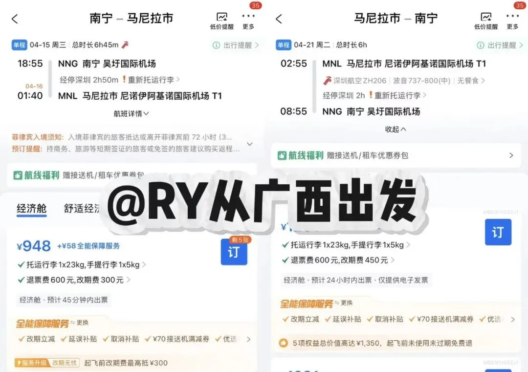 【换季上新】新航季南宁多了几条国际线?三月三还能这样走去菲律宾?南航远期次卡好价