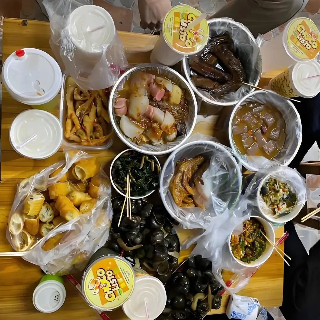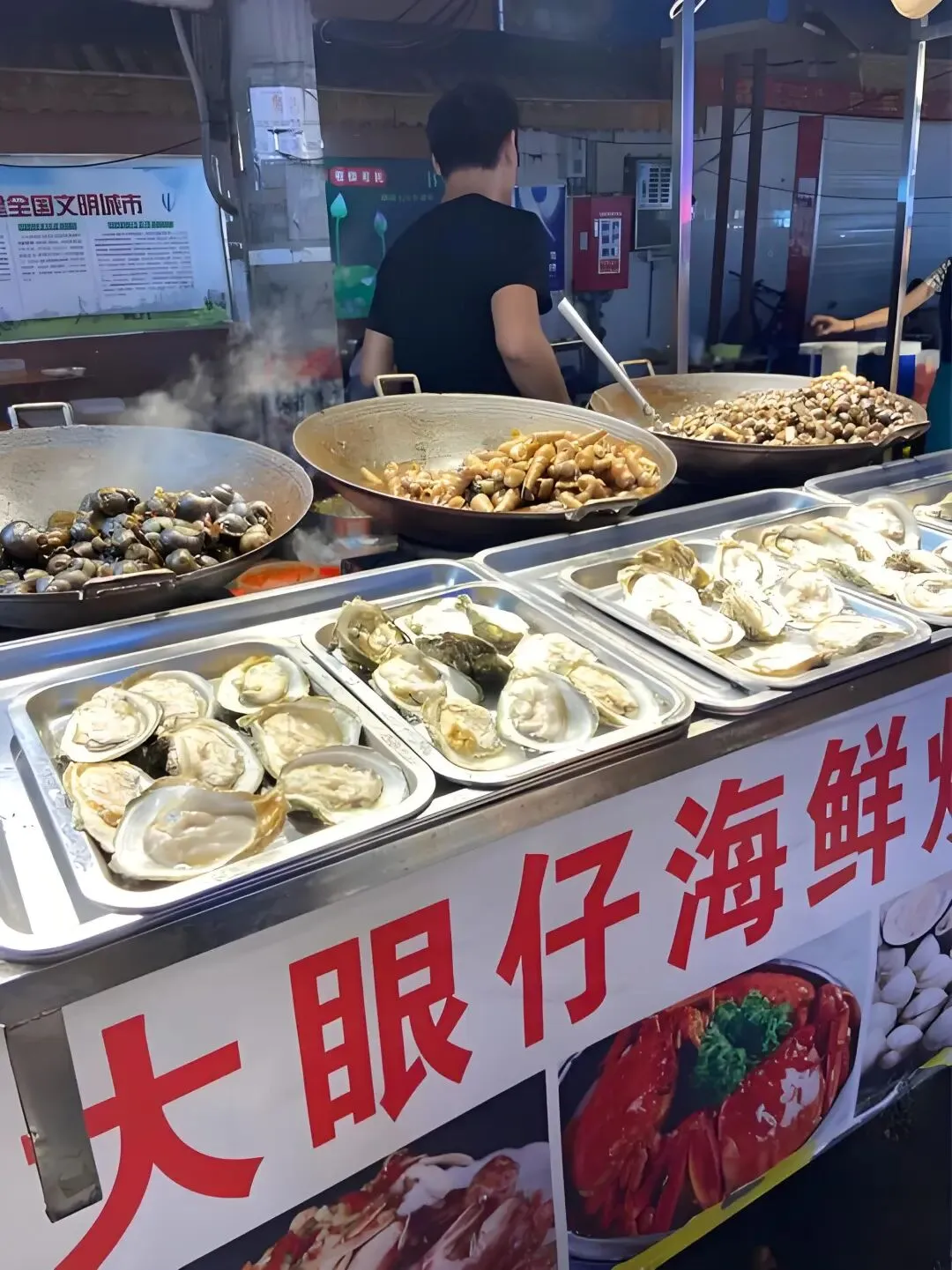 海鲜与小吃的大杂烩:大眼仔海鲜的铁锅里,炭火烘烤着肥美的生蚝,蒜蓉的香气混合着海风的咸味;卷筒粉皮薄馅大,淋上特制的黄皮酱;水饺煎饺4元10只的物价已成绝响;还有茶大力的奶茶,铁板鱿鱼的滋滋声……两百多家摊位,百家争鸣,每一口都是独一无二的南宁味。