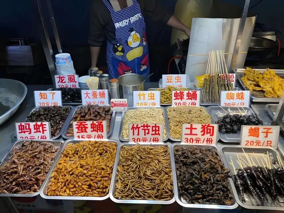 生猛的“黑暗料理”:老中山路的包容性令人惊叹。正如照片所示,香炸椒盐昆虫摊前总是围满了猎奇的食客。竹节虫、蚕蛹、蚂蚱,这些在外地人眼中惊悚的食物,被南宁人戏称为“绿色健康美食”。摊主们自信地吆喝,食客们一边尖叫一边大快朵颐,这是南宁饮食文化中最具野性的一笔。