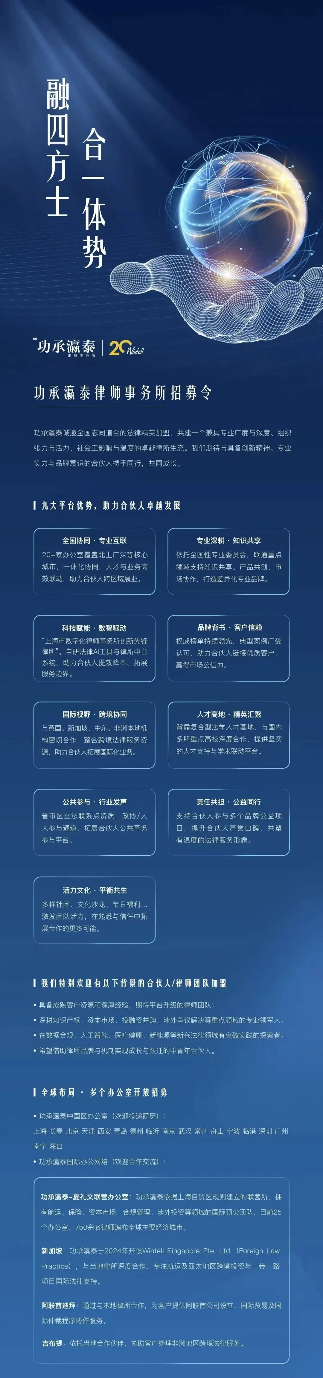 功承瀛泰(南宁)律师事务所位于广西南宁市良庆区,是上海功承瀛泰律师事务所在南宁设立的分支机构。功承瀛泰成立近二十年,被授予“全国律师行业先进党组织”、“全国优秀律师事务所”、“全国律师行业创先争优先进集体”等荣誉,连续多年获得钱伯斯、The Legal 500、Asialaw Profiles、LEGALBAND、《商法》CBLJ、《亚洲法律杂志》ALB、IFLR1000等知名法律评级机构推荐,在海内外享有良好声誉。