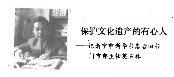 ①本文摘自赵长海主编《新中国古旧书业》,主要参考何秀岳著《保护文化遗产的有心人——记南宁市新华书店古旧书门市部主任莫玉林》,载《发行家列传》(二),辽宁人民出版社1989年8月版,第327-331页。