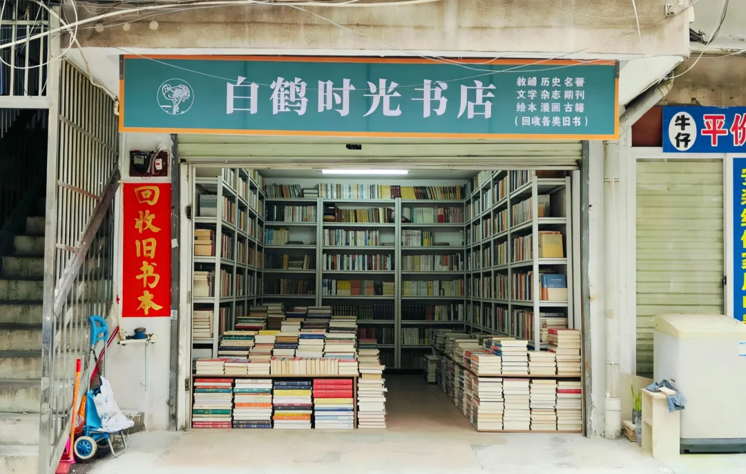 (注:在手机地图APP上搜索“白鹤时光书店”,导航即可见。或:地铁5号线五一立交站A出口往北步行500米处,中间需穿过一处小铁门,到达三元小区A10栋即可见。)