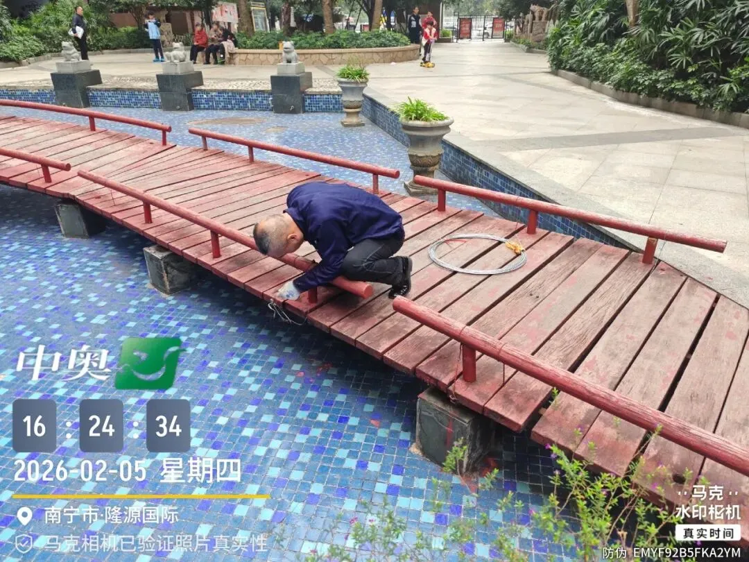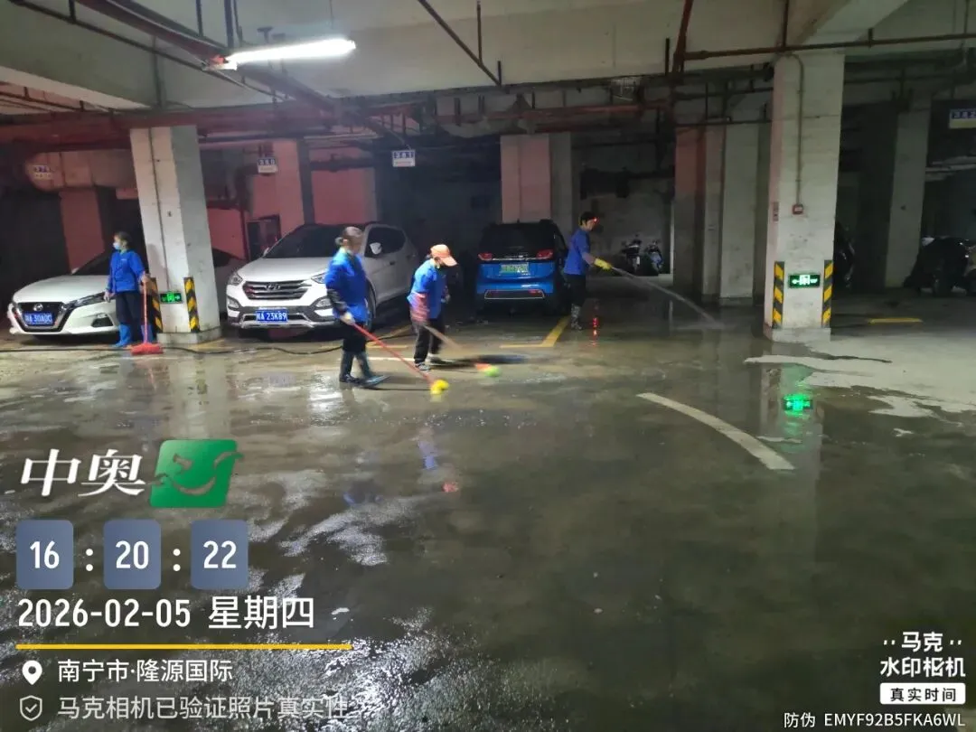 ▶ 本月度完成专项清洁2次,其中完成了地下室冲洗;景观水池冲洗等。