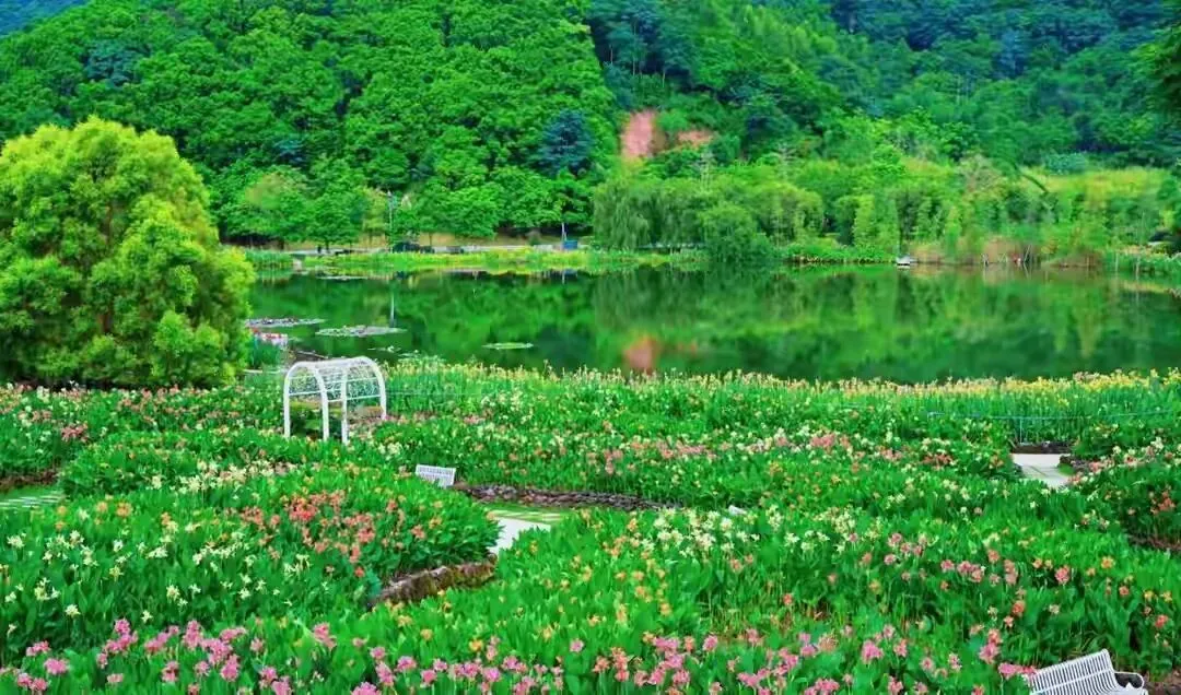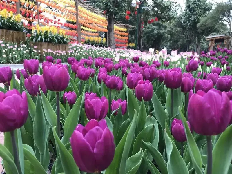 一进山就被花海狠狠拿捏。桃花岛粉云压顶,随手一拍都是汉服大片;樱花园落英缤纷,风一吹就下起樱花雨,氛围感直接拉满;黄花风铃木谷金灿灿一片,像撒了满山黄金,拍照不用滤镜都出片;还有12万株郁金香沿坡铺开,红橙黄紫撞色超吸睛,简直是行走的油画本画。