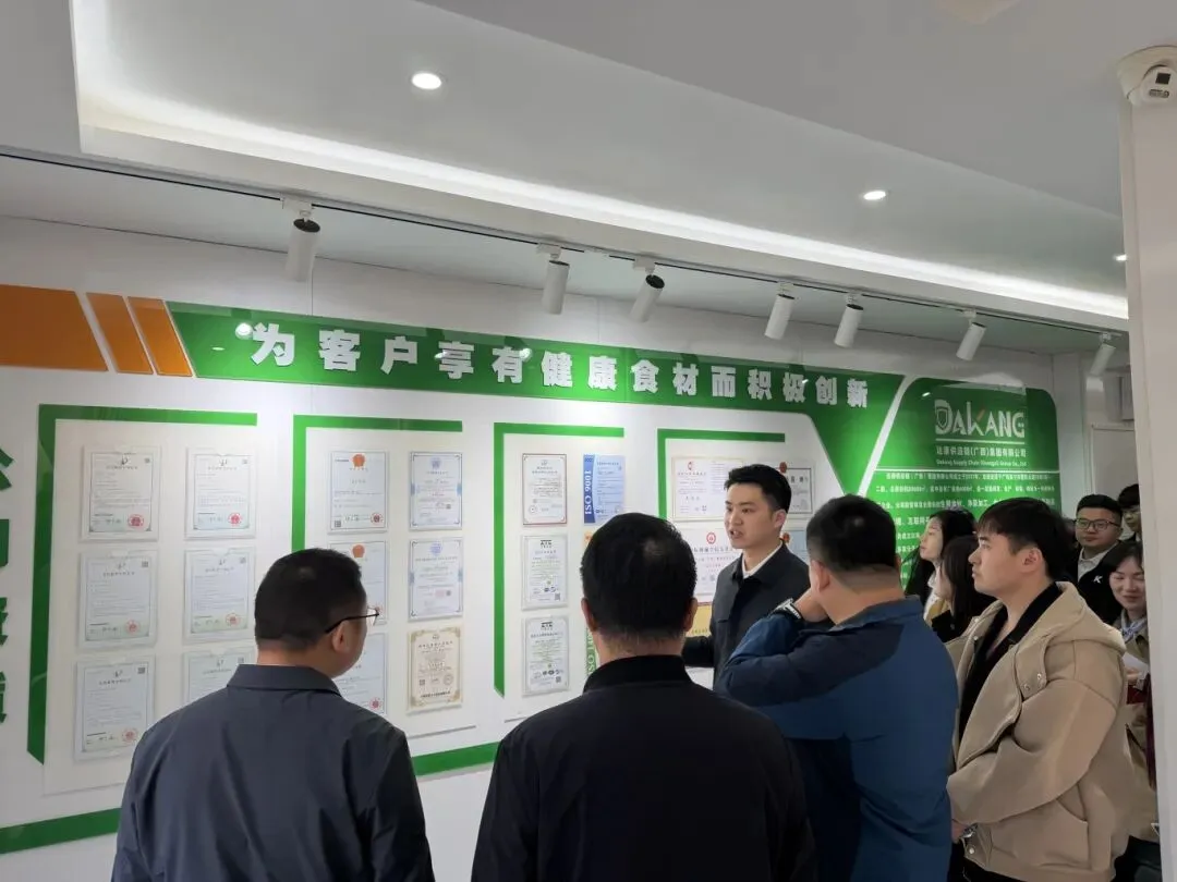 黎纪龙也向考察团详细介绍了企业的发展历程与核心优势。达康供应链集团成立于2017年,总部位于广西南宁,是一家集研发、生产、销售、物流于一体的综合服务型企业。