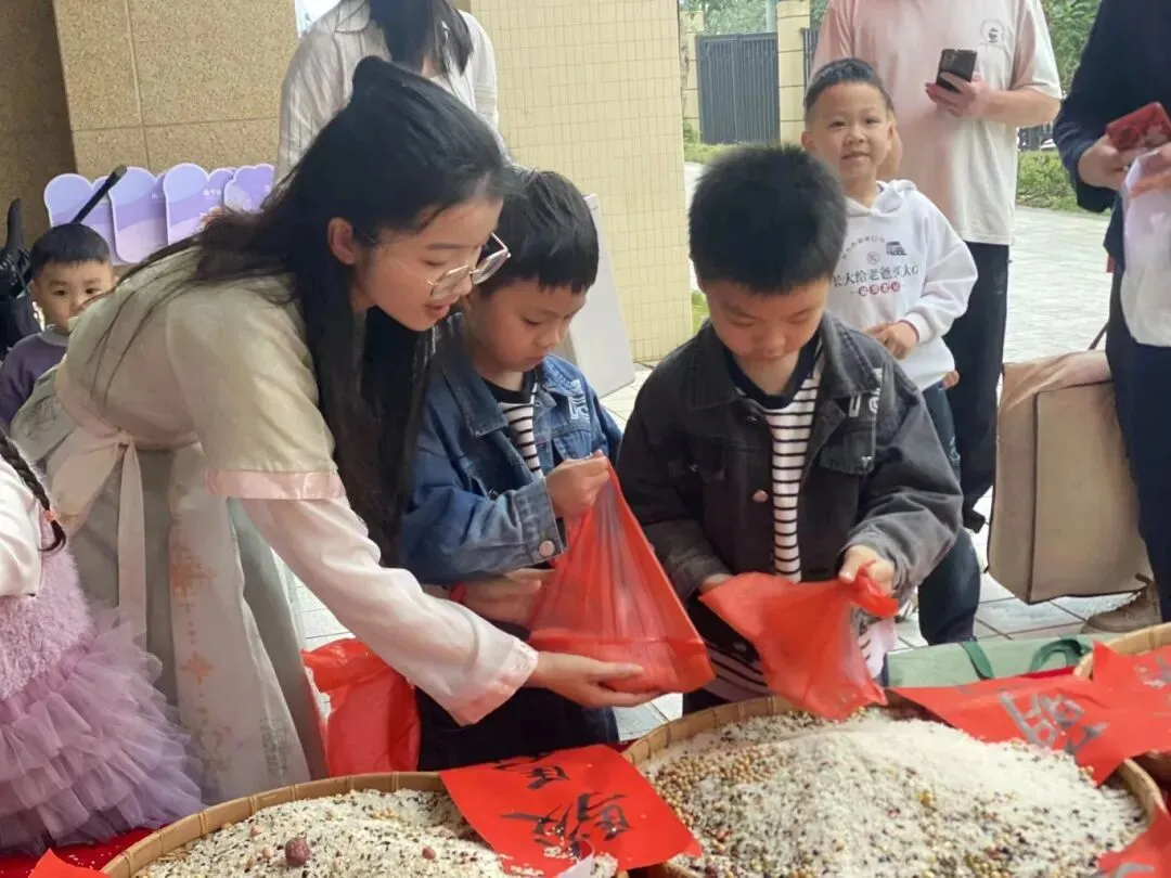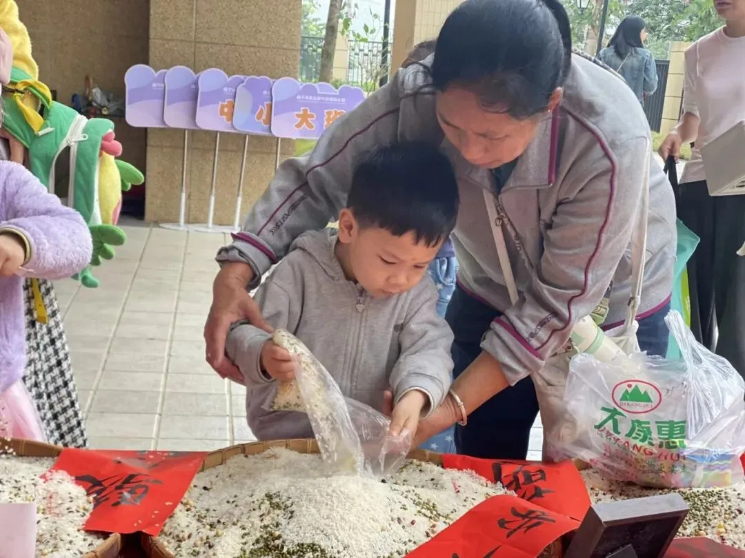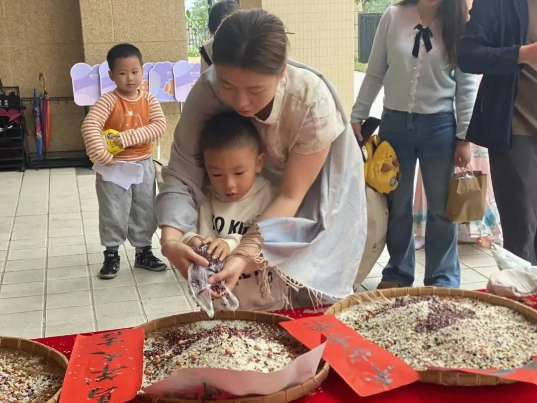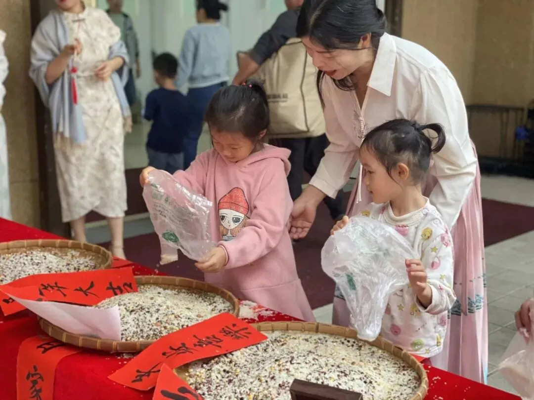 各班小朋友把汇聚百家“福”的谷物装进“福”袋带回家,和家人一起品尝。寓意着“吃百家米,享百家福”。小小的举动,承载着幼儿园对每一个孩子健康成长的美好祝愿,也让传统文化的种子,在孩子们心中悄悄生根~~~~