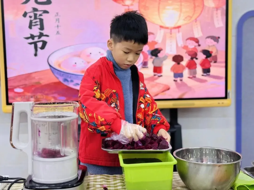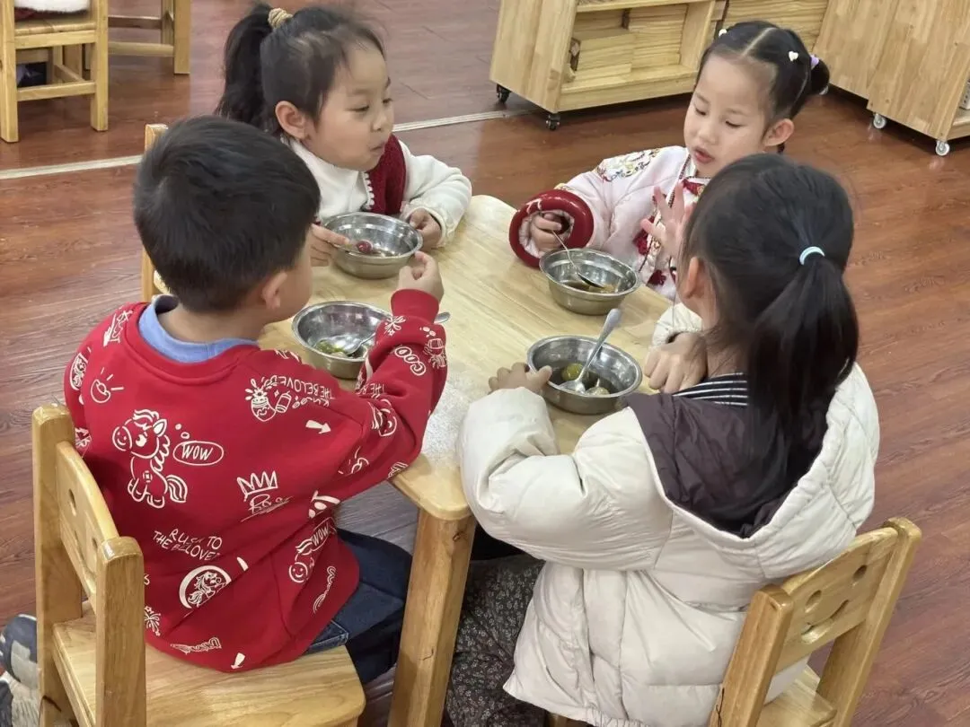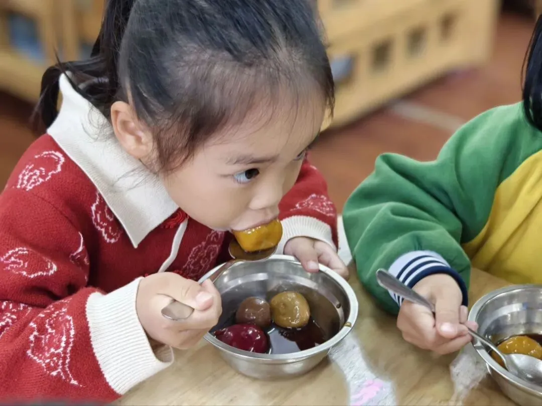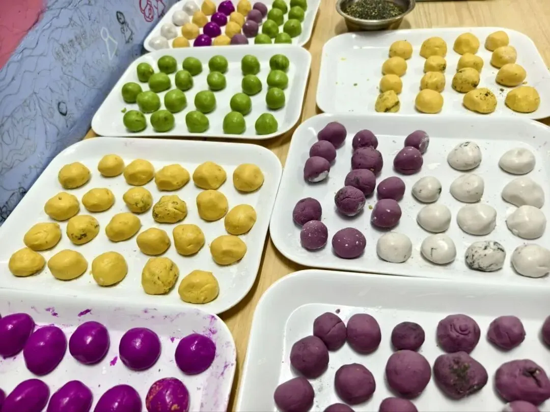 软糯香甜的彩色汤圆新鲜出炉啦,孩子们迫不及待地品尝着自己亲手制作的汤圆,每一口都是满满的成就感与团圆的甜蜜。