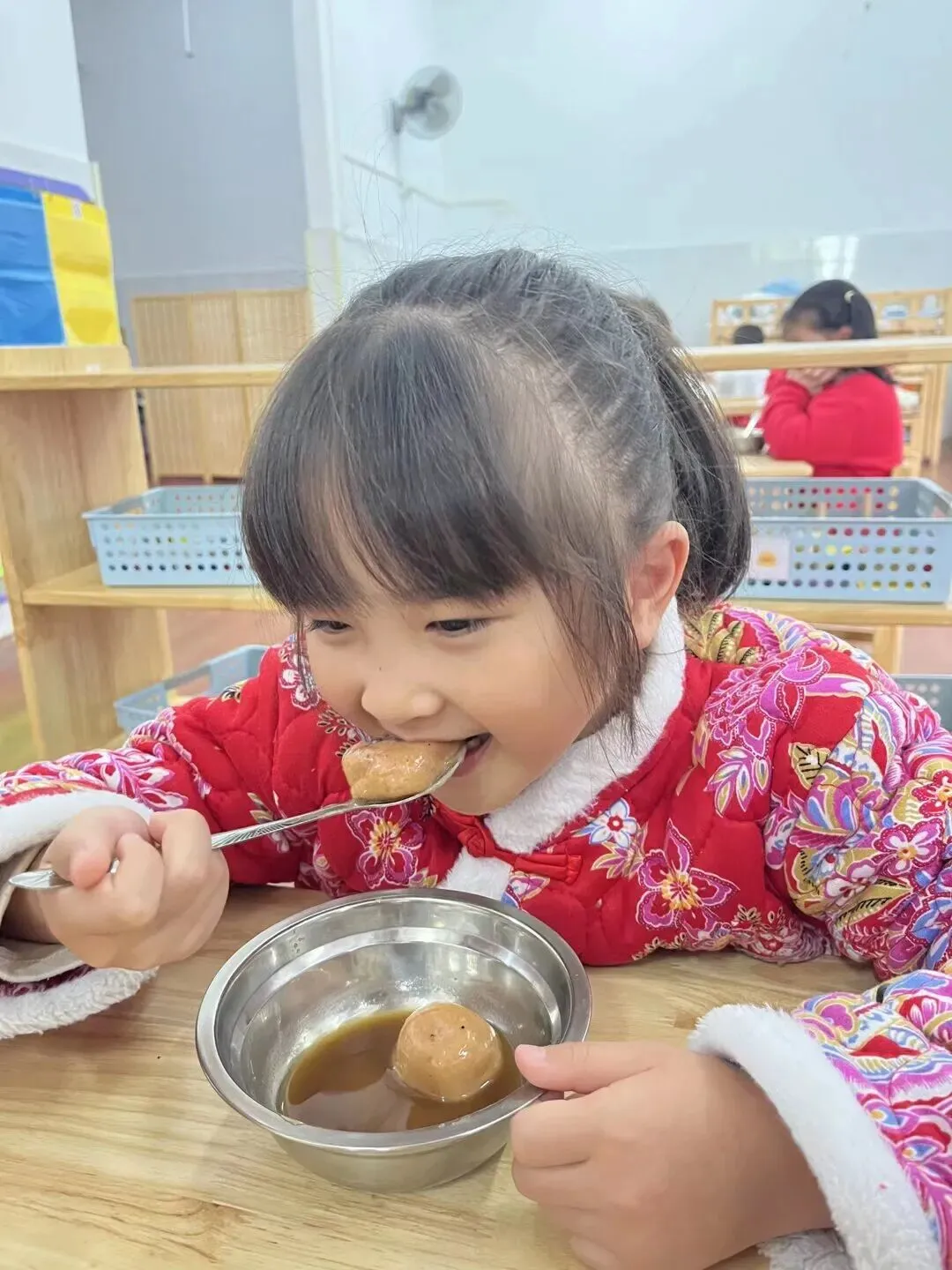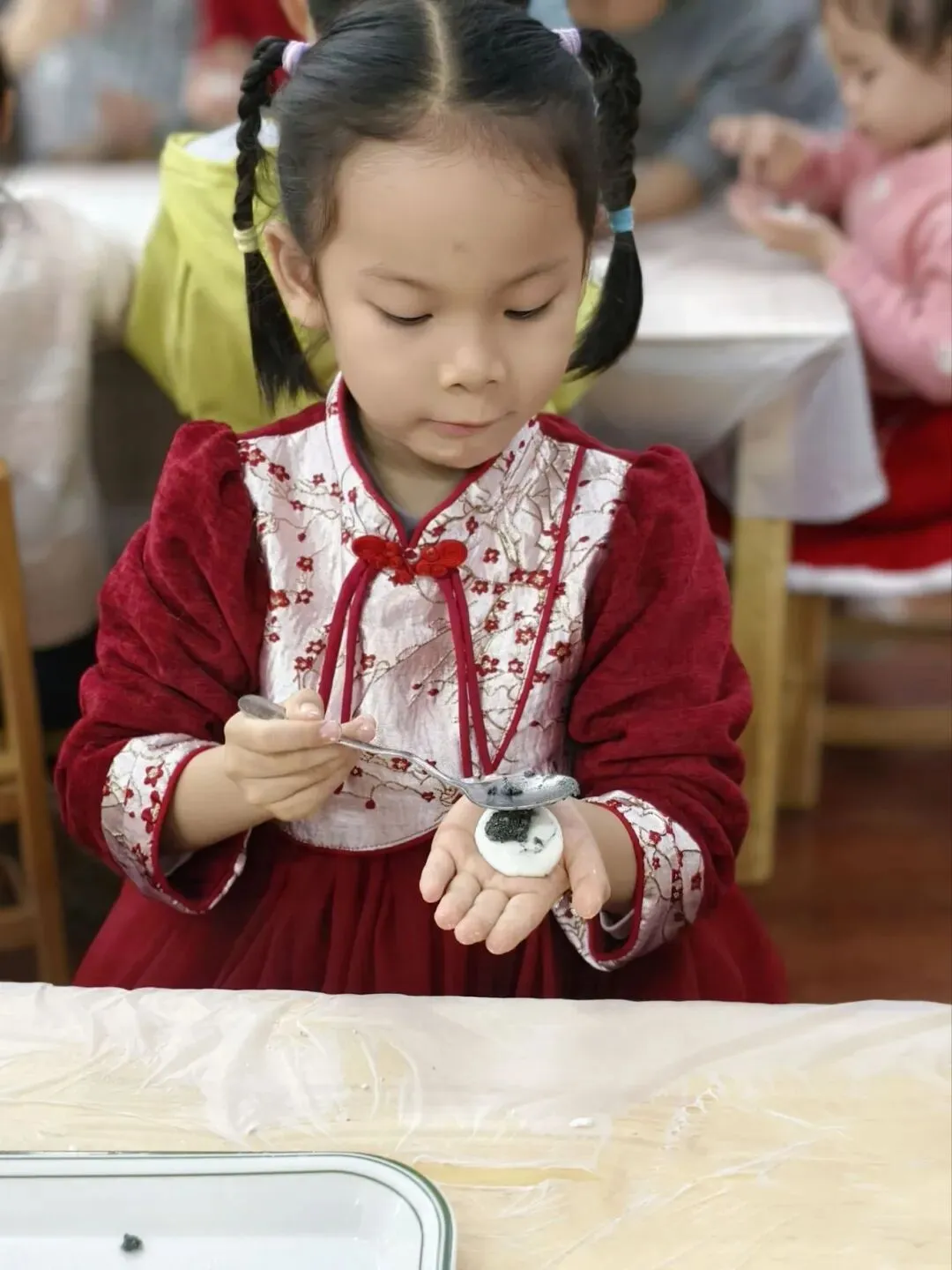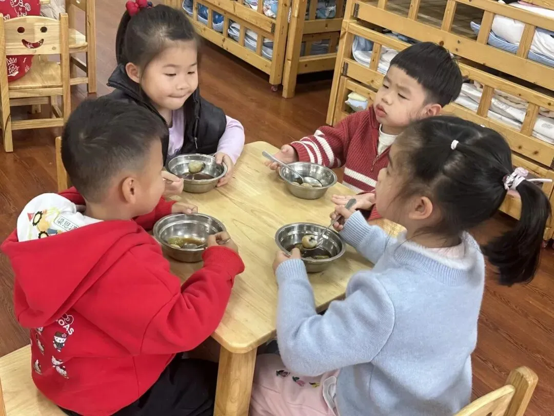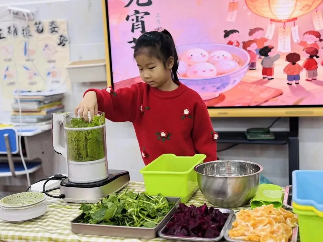 软糯香甜的彩色汤圆新鲜出炉啦,孩子们迫不及待地品尝着自己亲手制作的汤圆,每一口都是满满的成就感与团圆的甜蜜。