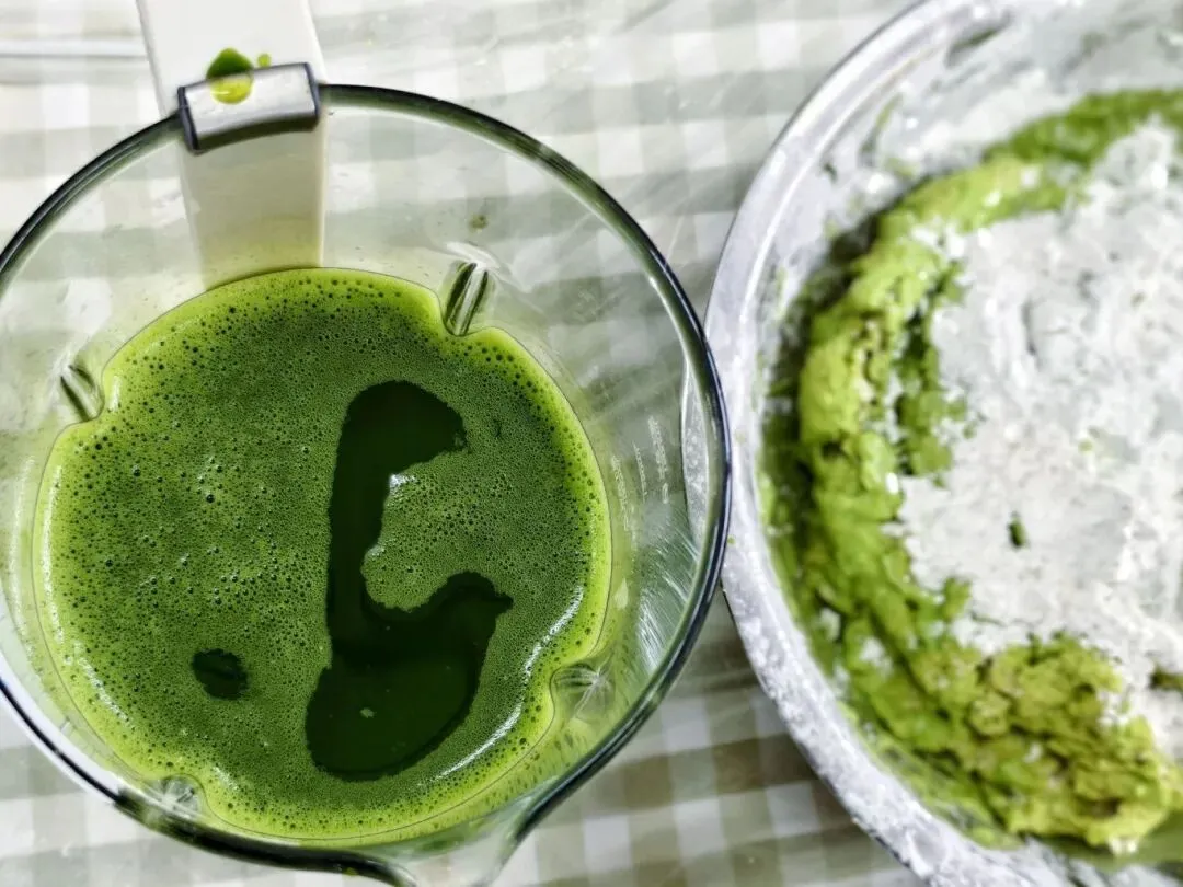 今天元宵节,我们带来了火龙果、蔬菜、菠菜、南瓜用榨汁机打,再放到白面粉里揉啊揉……