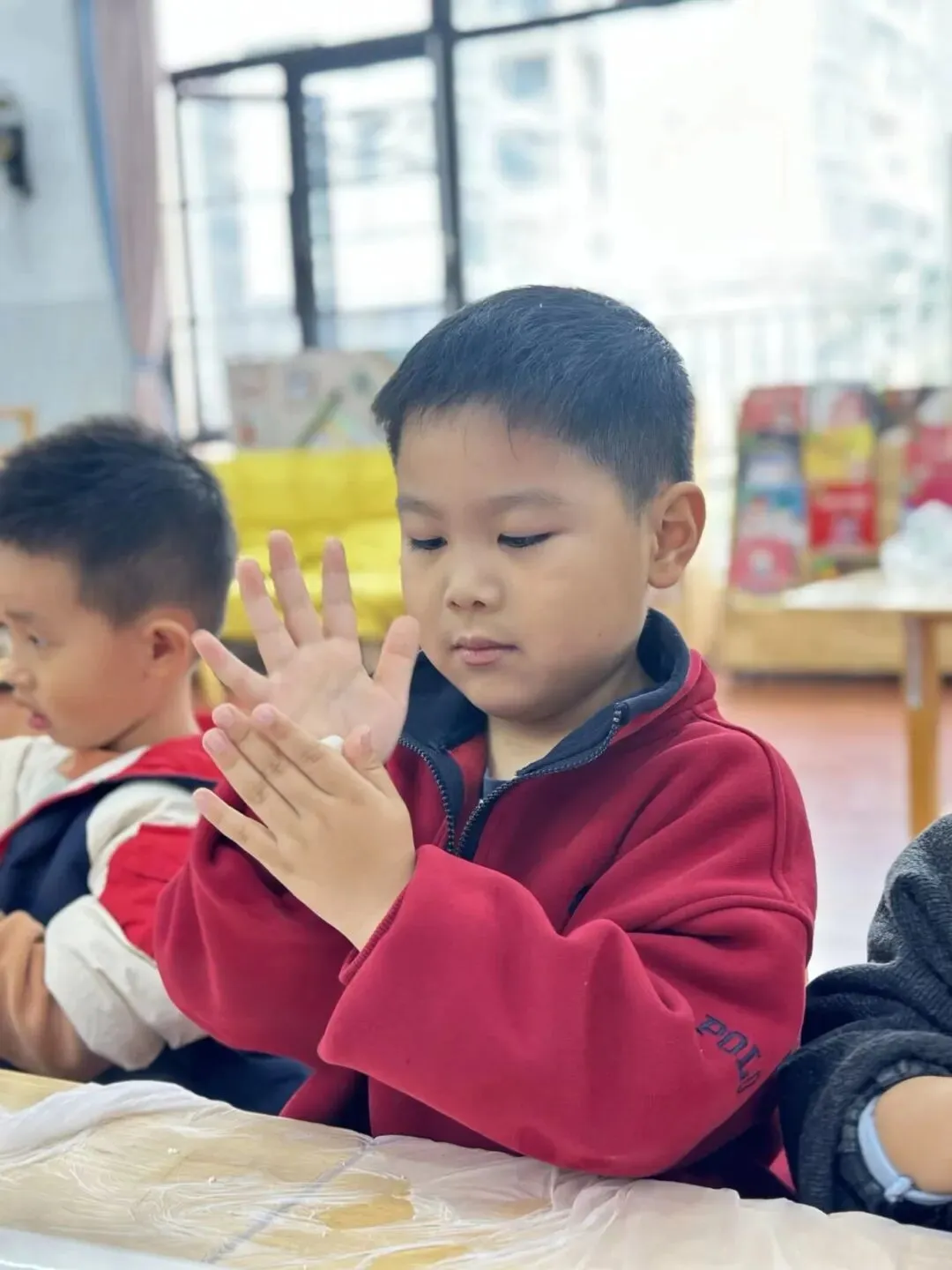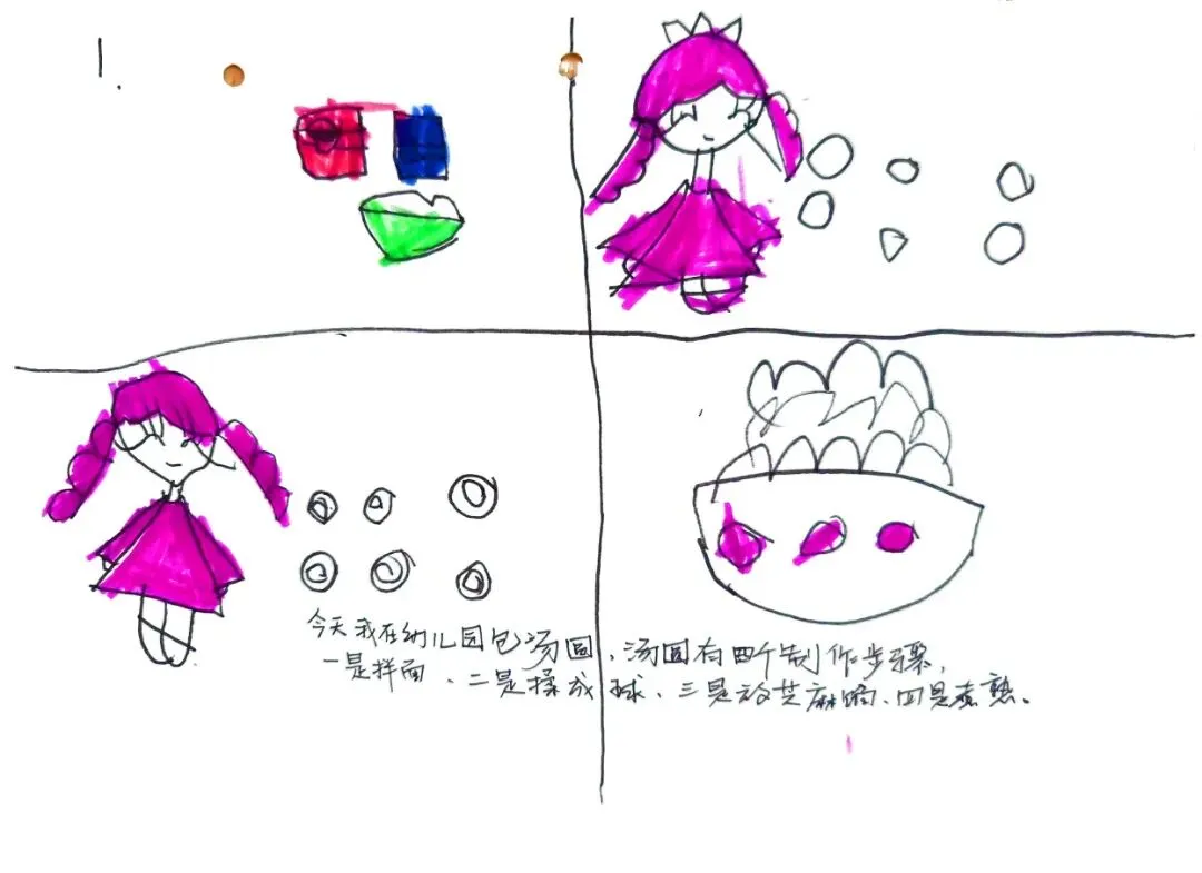 今天我在幼儿园学会包汤圆了,做汤圆有四个步骤:第一和面,第二揉成球,第三步放芝麻,四是煮熟……