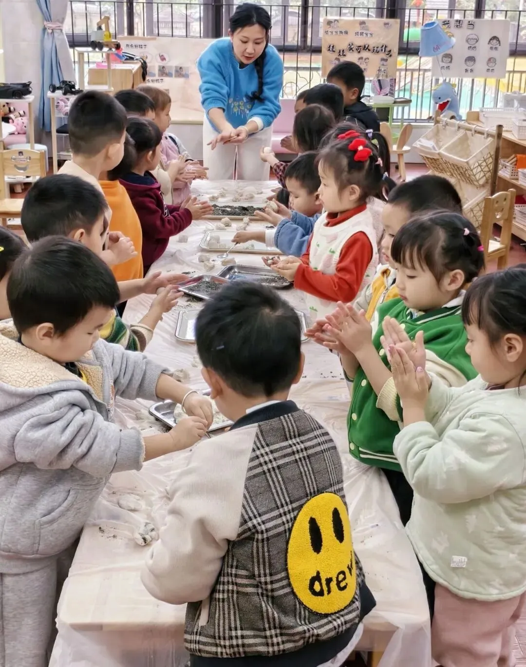今天是元宵节,我和大家一起包汤圆,我包的露馅了,老师就耐心地教我……