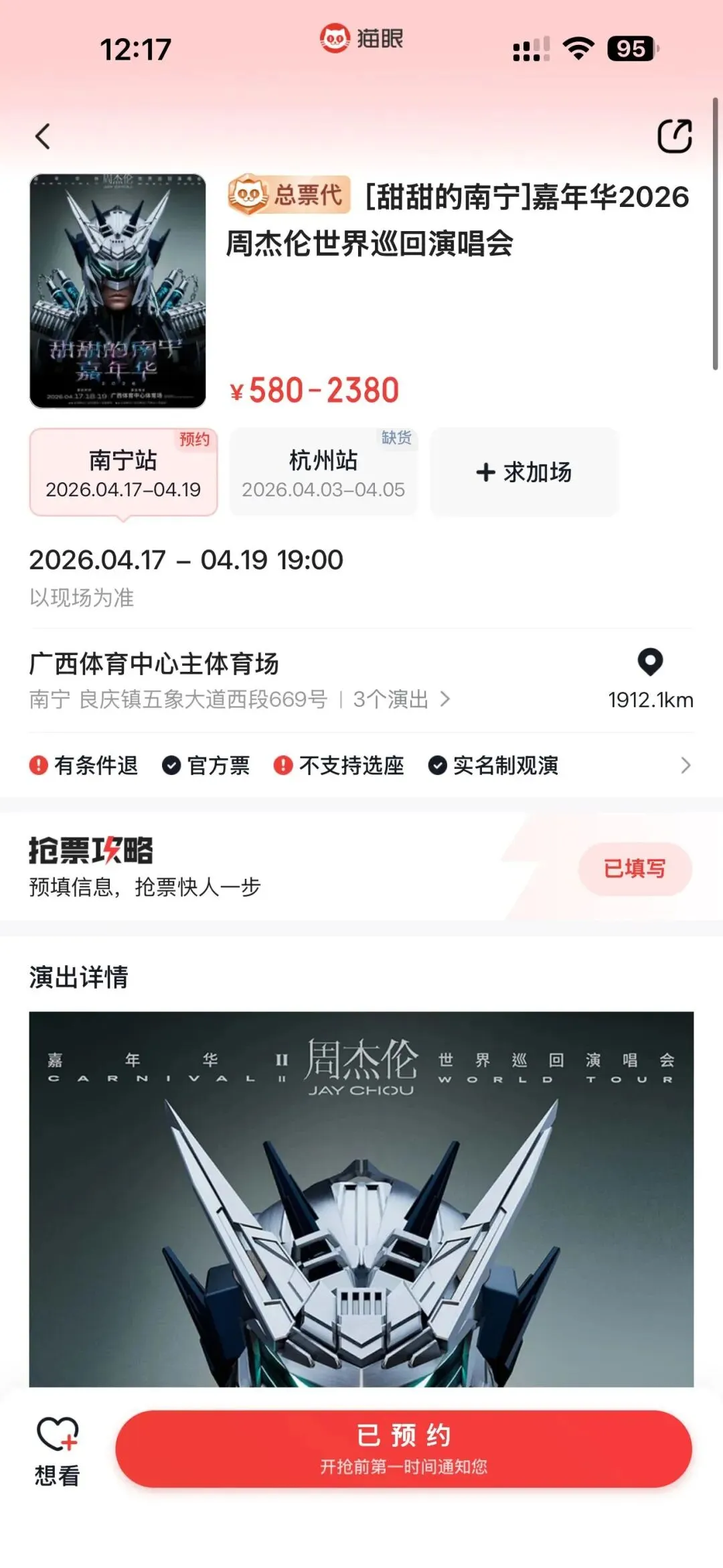 >甜甜的南宁 周杰伦2026演唱会可以预约了
