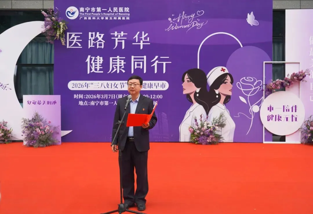 春风送暖,芳华绽放。在第116个“三八”国际劳动妇女节即将到来之际,3月7日上午,南宁市第一人民医院以“医路芳华,健康同行”为主题,在2号楼前小广场温情举办妇女节专场健康早市活动,为全市广大女性同胞送上一份专属健康礼遇。这既是医院聚焦女性健康需求的精准服务,也是致敬“她力量”、彰显医者担当与人文关怀的暖心行动,让医者初心与春日温情同频共振。