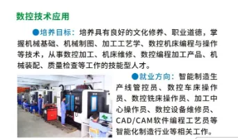 招生对象:初中毕业生学制:三年专业优势:本校数控专业是广西区示范性专业。数控实训中心是全国100家(广西4家)数控紧缺人才培训基地之一。建有数控加工、数控原理、PLC、数控加工仿真等实训基地。配置有数控车、数控铣、加工中心、数控线切割机、数控原理综合实验台、CAXA、Pro/E、MasterCAM等数专业的标志性教学设施。