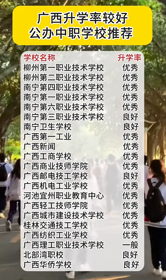 报名热线: 191 7771 8919 周老师 (微信同号)中考出成绩前不看分数,中考出成绩后从高到低录取,择优录取,录满截止,故每年的分数要求不一样,所以家长要提前给孩子预定名额。考不上高中的孩子可以添加下方老师微信或发送问题,老师将第一时间为你解答 广西公办中专报名时间报名时间:2026年1月—8月招生电话:191 7771 8919 / 189 0777 3301 周老师广西公办中专录取时间录取时间:中考成绩公布起至录满为止报名方法:请提前联系老师报名或到校现场报名可添加老师微信咨询报名:03招生名额:每个专业名额有限,招满为止,请尽早报名。05联系方式:联系电话:19177718919(微信同号)06广西区中职院校:南宁市第一职业技术学校、南宁市第四职业技术学校、南宁市第六职业技术学校、南宁市第三职业技术学校、南宁市卫生学校、广西机电工程学校、广西机电工业学校、广西第一工业学校、广西工商学校、广西广播电视学校、广西工贸职业技术学校、广西纺织工业学校、广西邮电技工学校、广西轻工技师学院、广西商贸技师学院、广西物资学校、广西动力技工学校等等(声明:以上内容贵在分享,版权归原作者及原出处所有,分享为公益,未用于营利,如涉及版权等问题,请及时与我们联系,我们会第一时间进行处理。)