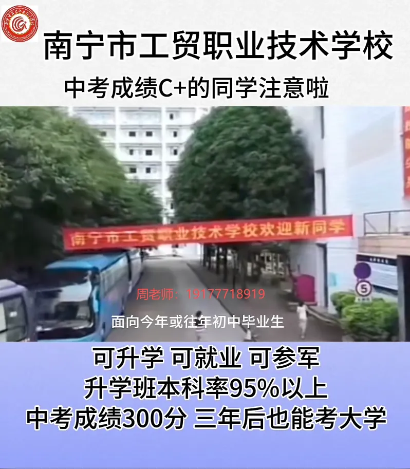 中考出成绩前不看分数,中考出成绩后从高到低录取,择优录取,录满截止,故每年的分数要求不一样,所以家长要提前给孩子预定名额。考不上高中的孩子可以添加下方老师微信或发送问题,老师将第一时间为你解答 广西公办中专报名时间报名时间:2026年1月—8月招生电话:191 7771 8919 / 189 0777 3301 周老师广西公办中专录取时间录取时间:中考成绩公布起至录满为止报名方法:请提前联系老师报名或到校现场报名可添加老师微信咨询报名:03招生名额:每个专业名额有限,招满为止,请尽早报名。05联系方式:联系电话:19177718919(微信同号)06广西区中职院校:南宁市第一职业技术学校、南宁市第四职业技术学校、南宁市第六职业技术学校、南宁市第三职业技术学校、南宁市卫生学校、广西机电工程学校、广西机电工业学校、广西第一工业学校、广西工商学校、广西广播电视学校、广西工贸职业技术学校、广西纺织工业学校、广西邮电技工学校、广西轻工技师学院、广西商贸技师学院、广西物资学校、广西动力技工学校等等(声明:以上内容贵在分享,版权归原作者及原出处所有,分享为公益,未用于营利,如涉及版权等问题,请及时与我们联系,我们会第一时间进行处理。)