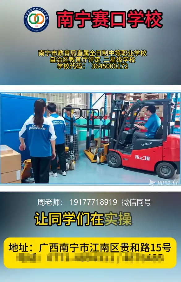 中考出成绩前不看分数,中考出成绩后从高到低录取,择优录取,录满截止,故每年的分数要求不一样,所以家长要提前给孩子预定名额。考不上高中的孩子可以添加下方老师微信或发送问题,老师将第一时间为你解答 广西公办中专报名时间报名时间:2026年1月—8月招生电话:191 7771 8919 / 189 0777 3301 周老师广西公办中专录取时间录取时间:中考成绩公布起至录满为止报名方法:请提前联系老师报名或到校现场报名可添加老师微信咨询报名:03招生名额:每个专业名额有限,招满为止,请尽早报名。05联系方式:联系电话:19177718919(微信同号)06广西区中职院校:南宁市第一职业技术学校、南宁市第四职业技术学校、南宁市第六职业技术学校、南宁市第三职业技术学校、南宁市卫生学校、广西机电工程学校、广西机电工业学校、广西第一工业学校、广西工商学校、广西广播电视学校、广西工贸职业技术学校、广西纺织工业学校、广西邮电技工学校、广西轻工技师学院、广西商贸技师学院、广西物资学校、广西动力技工学校等等(声明:以上内容贵在分享,版权归原作者及原出处所有,分享为公益,未用于营利,如涉及版权等问题,请及时与我们联系,我们会第一时间进行处理。)