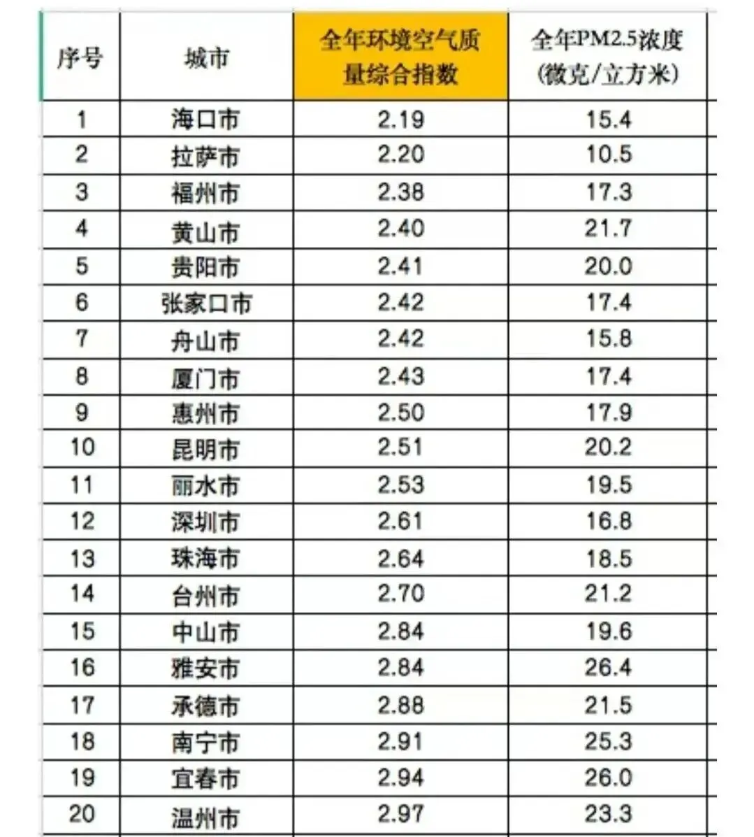 空气:2025年空气质量全国前20,省会第六。