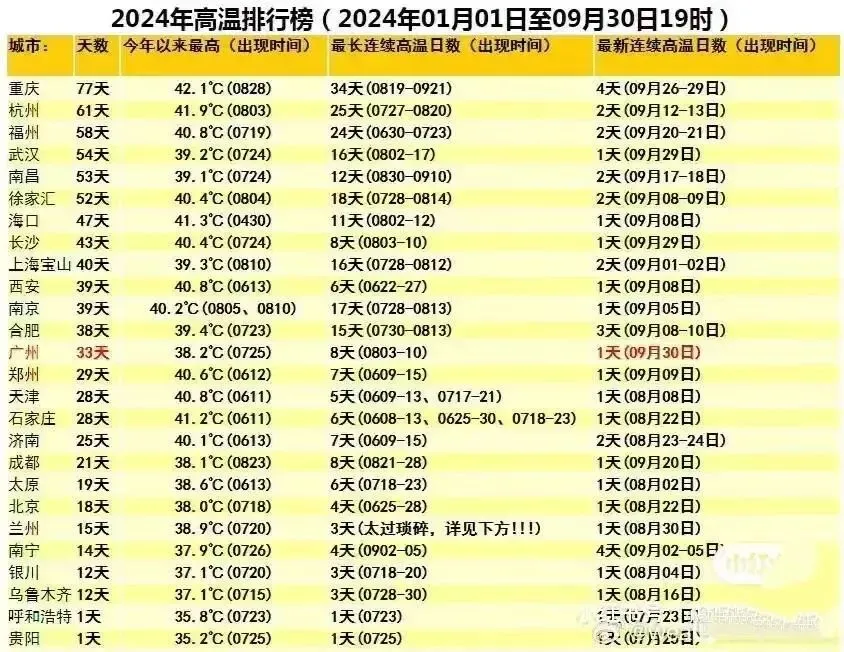 ▲2024年35度以上高温日排名,南宁只有14天